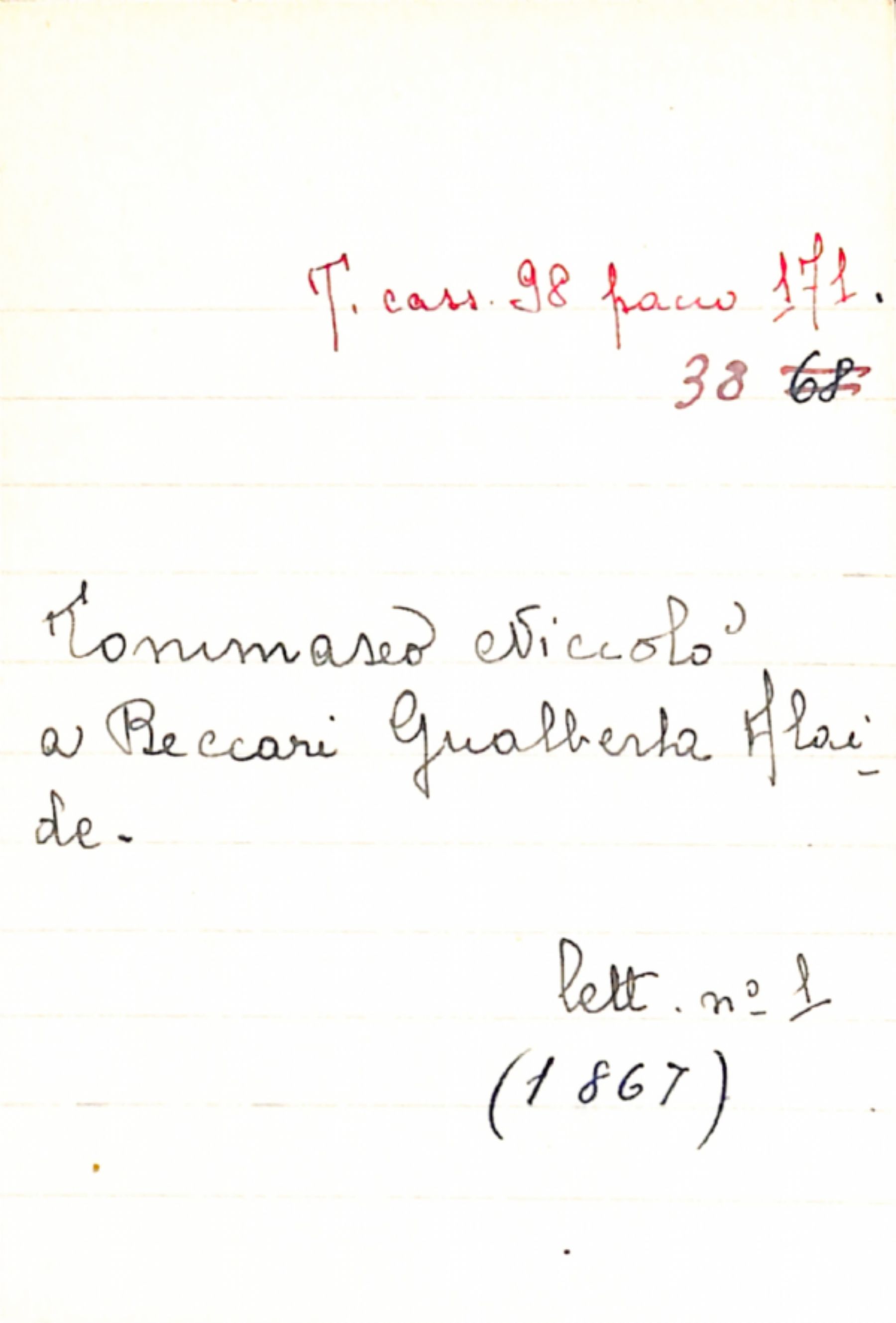 Fascicolo Tommaseo, Niccolò a Beccari, Gualberta Alaide