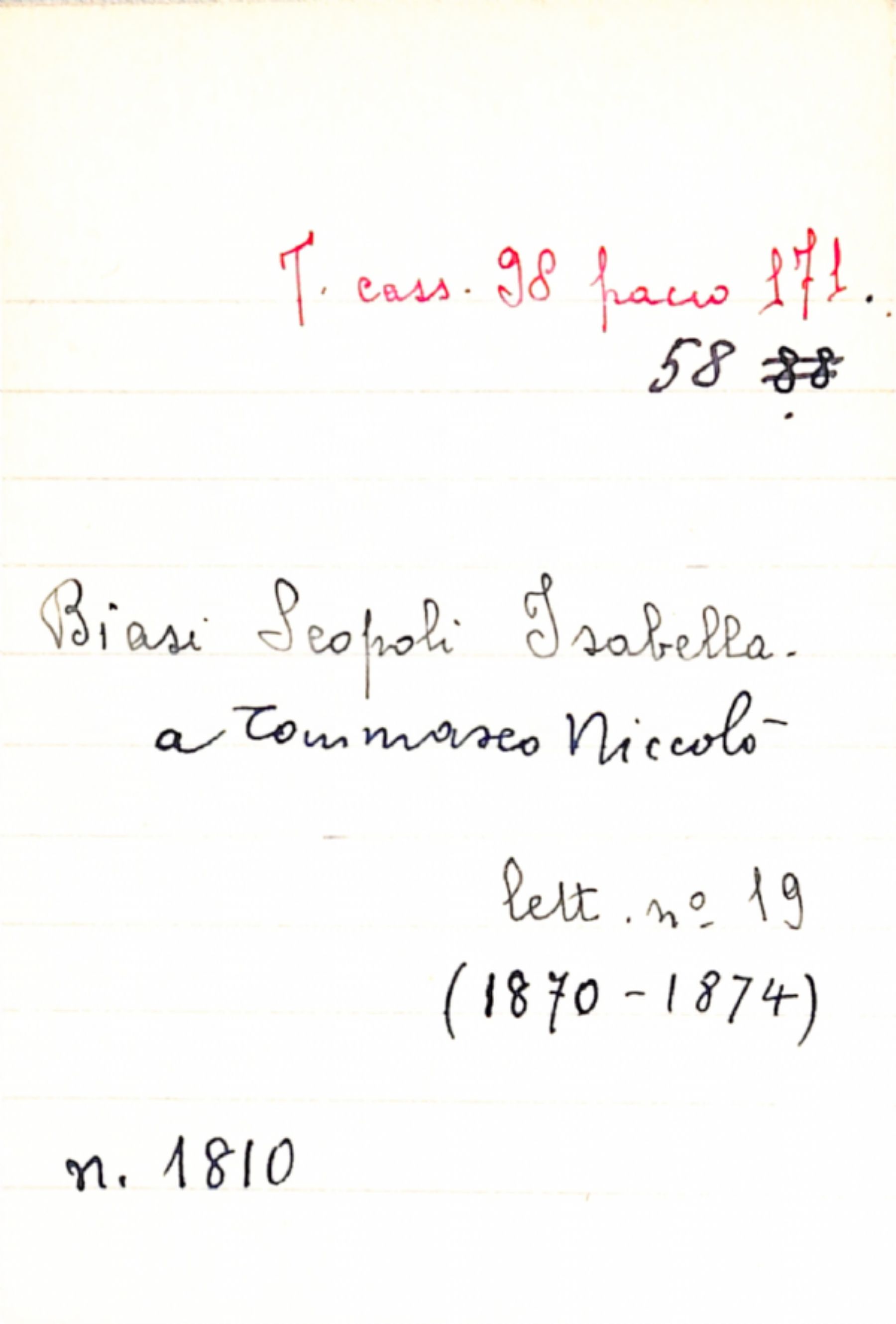 Fascicolo Biasi Scopoli, Isabella a Tommaseo, Niccolò