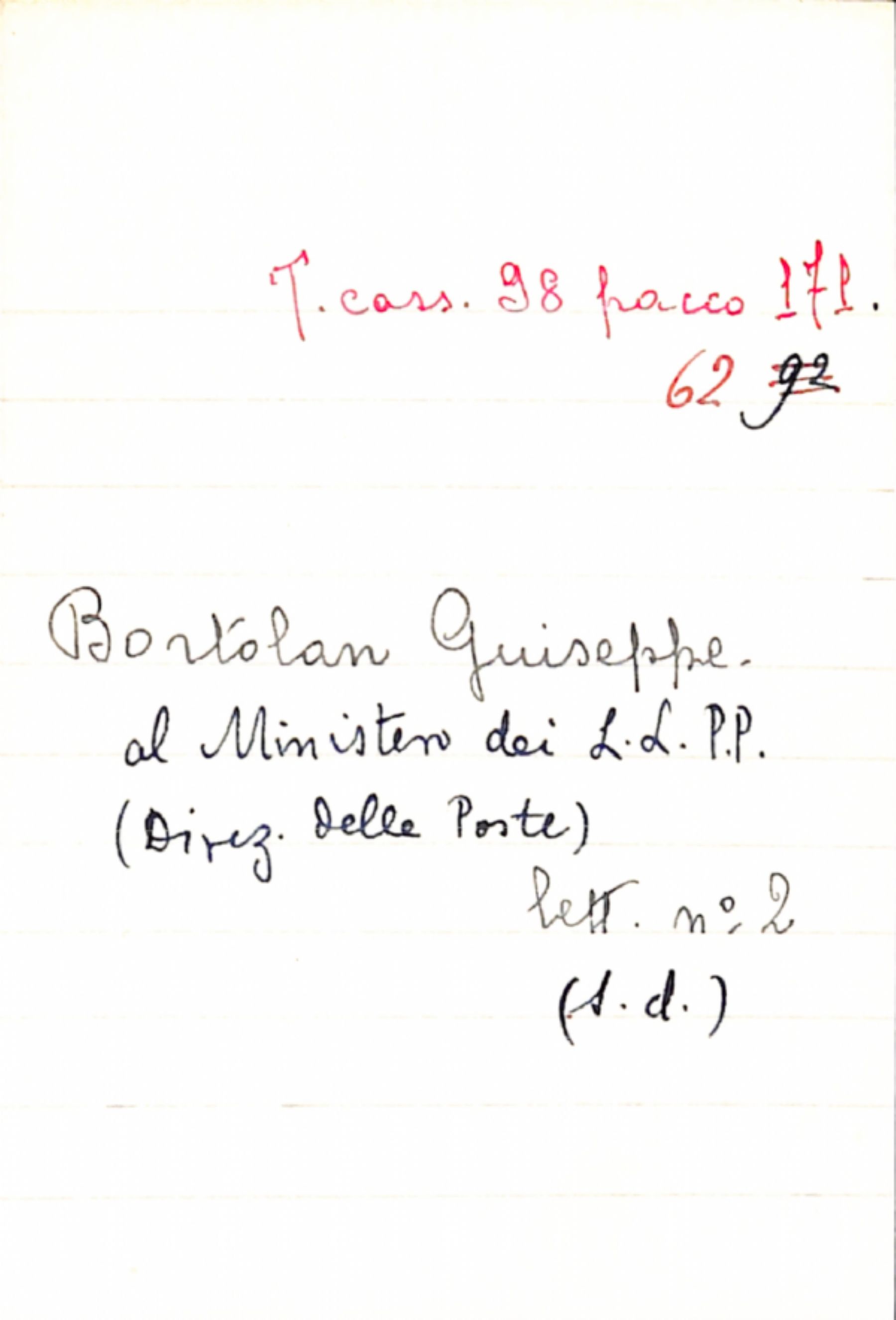 • Bortolan, Giuseppe a Ministero dei L.L.P.P. (Direz. delle Poste)