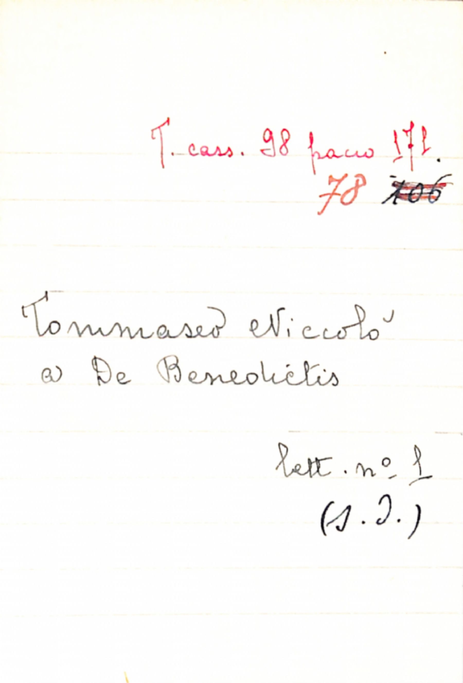 Fascicolo Tommaseo, Niccolò a De Benedictis