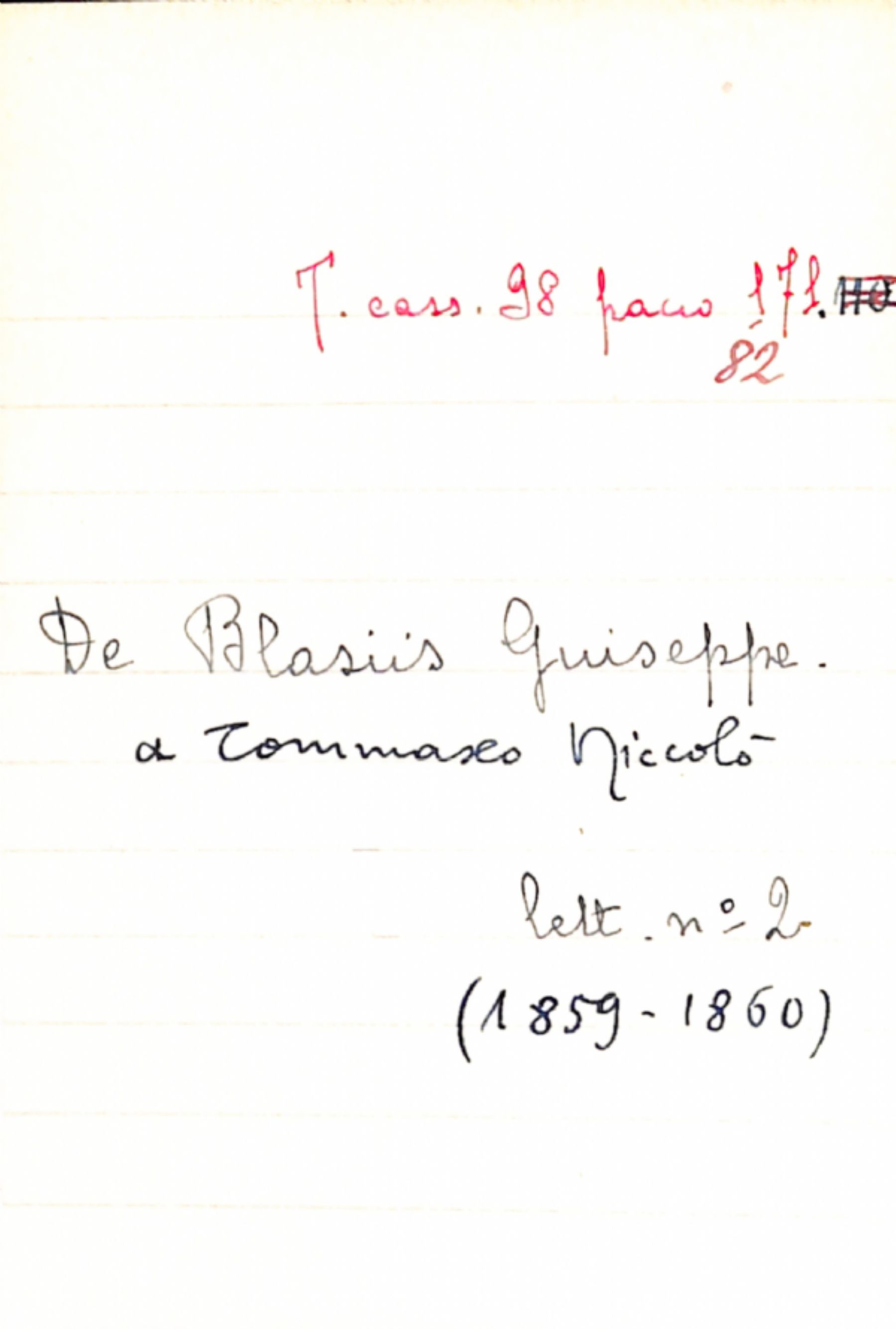 Fascicolo De Blasiis, Giuseppe a Tommaseo, Niccolò