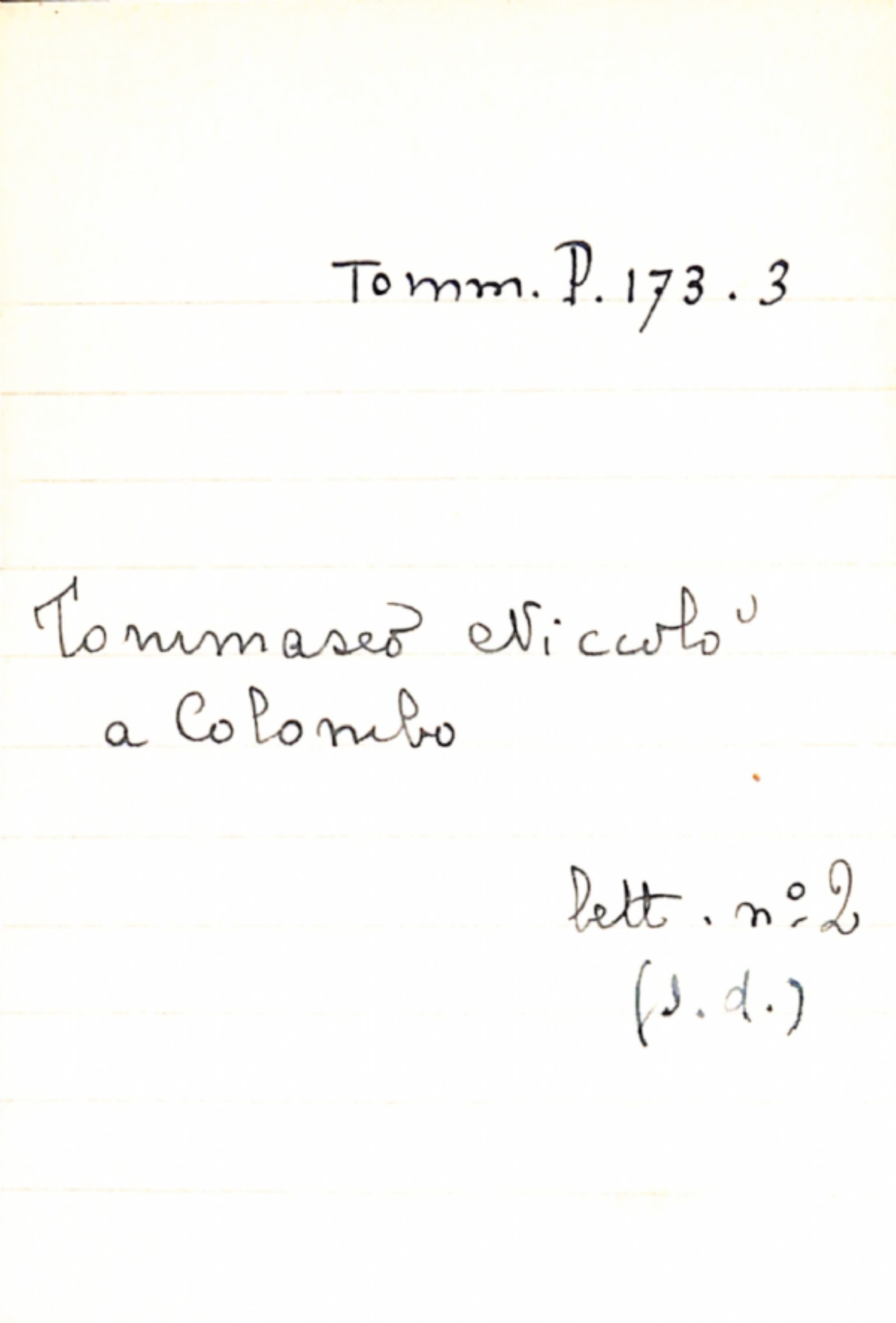 Fascicolo Tommaseo, Niccolò a Colombo