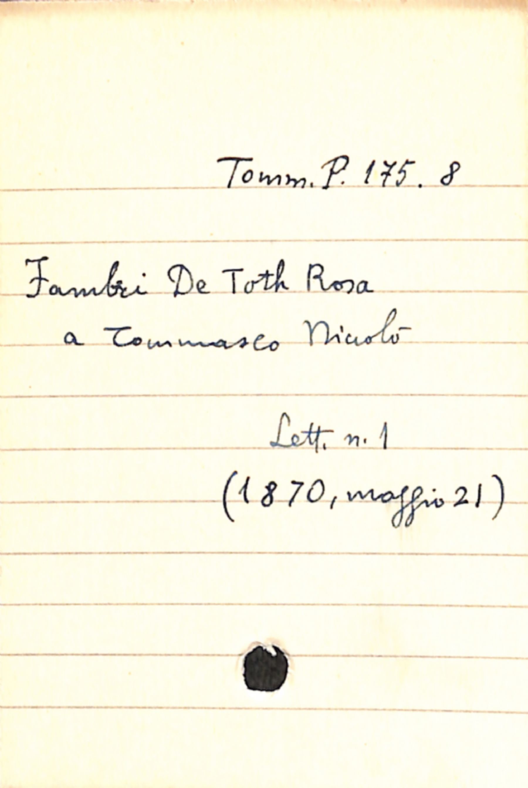 Fascicolo Fambri De Toth, Rosa a Tommaseo, Niccolò