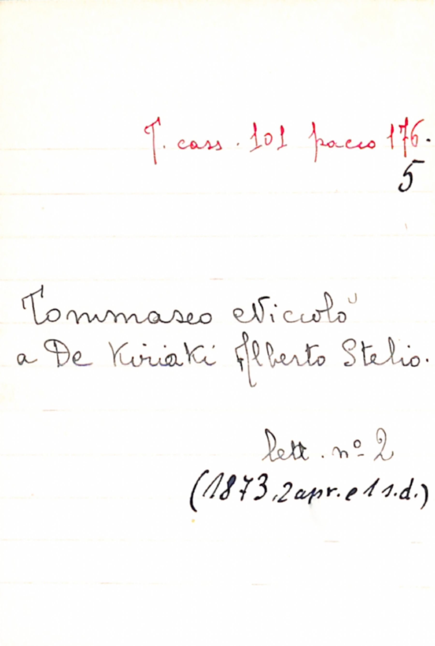 Fascicolo Tommaseo, Niccolò a De Kiriaki, Alberto Stelio