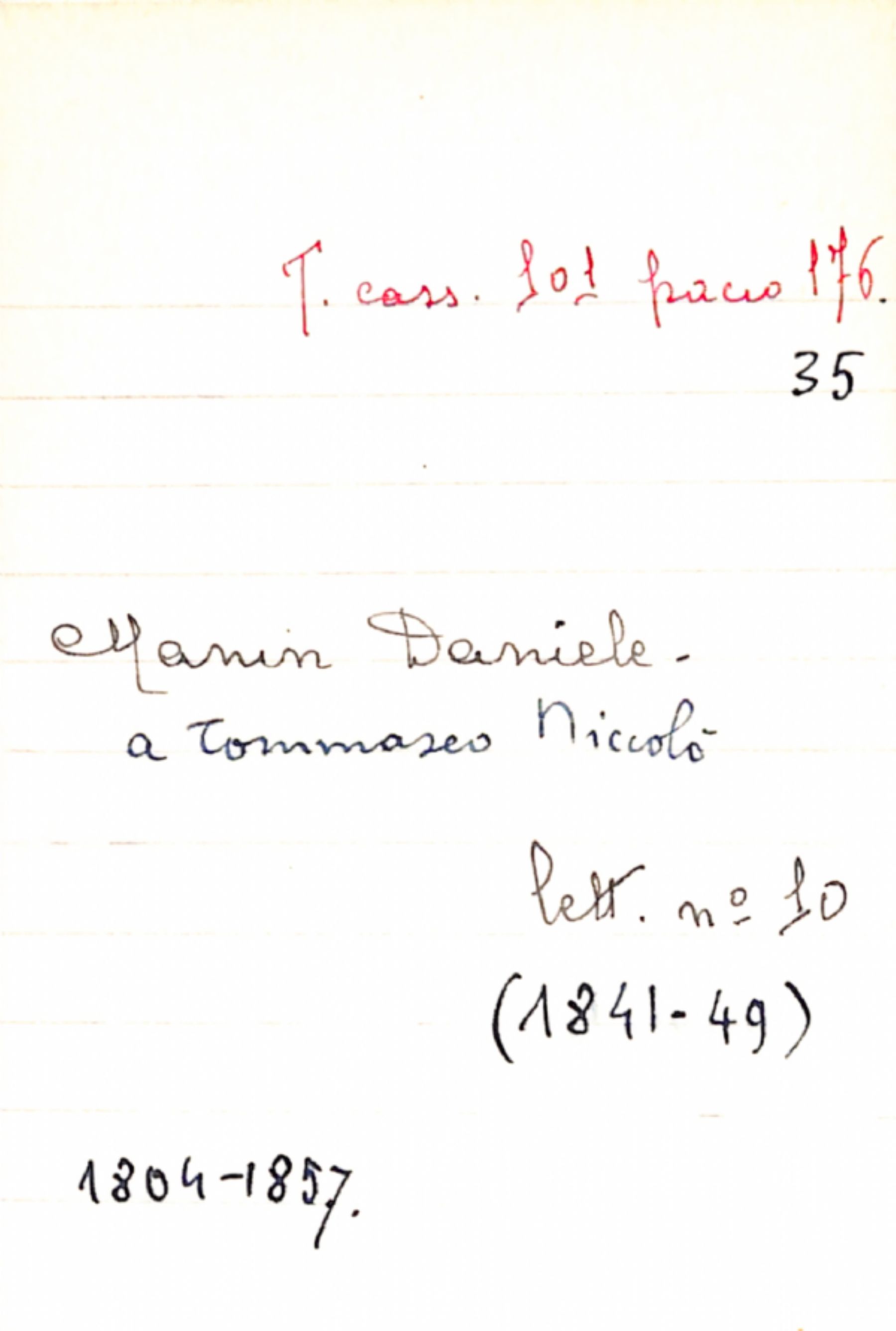 Fascicolo Manin, Daniele a Tommaseo, Niccolò