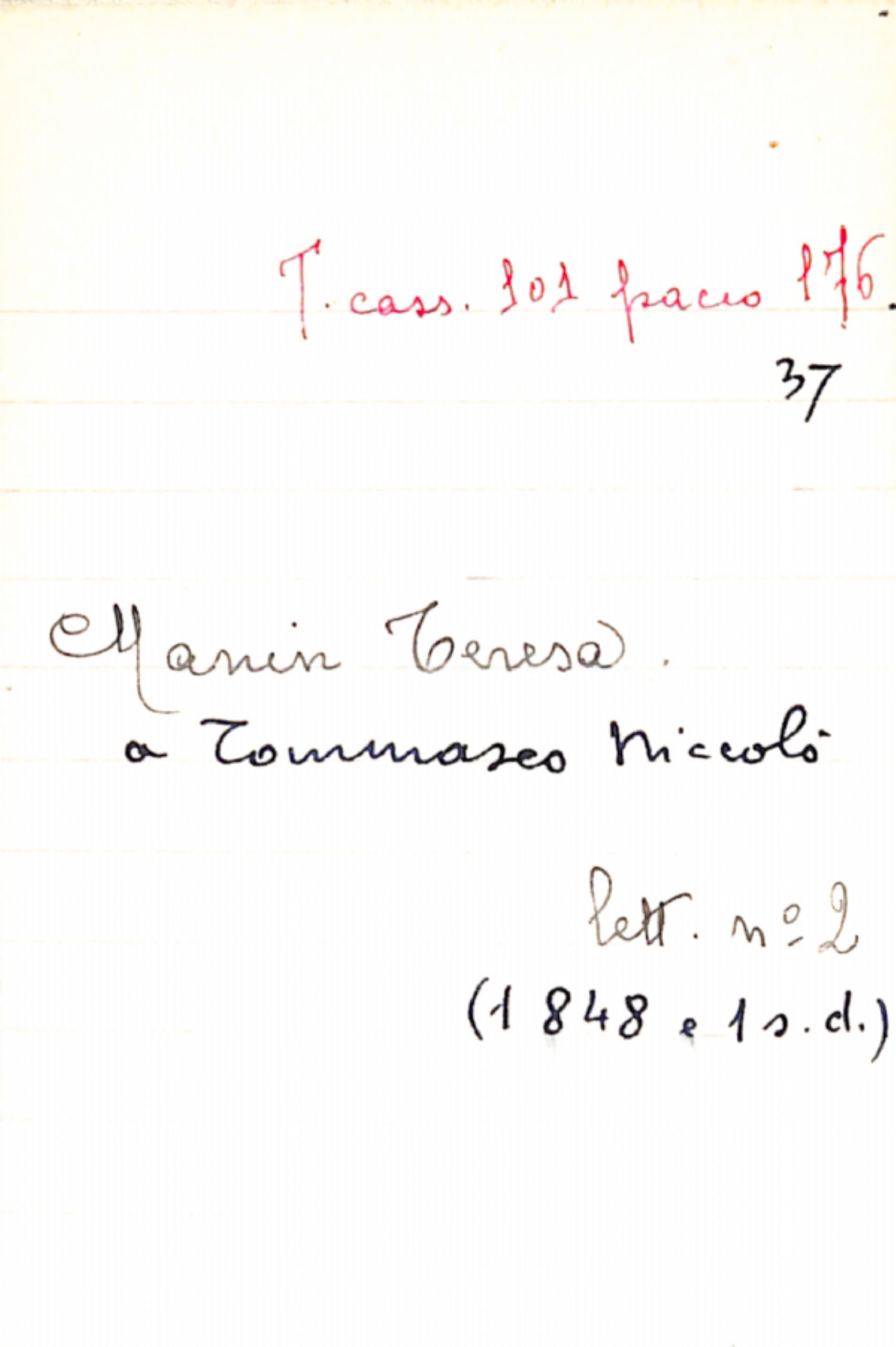 Fascicolo Manin, Teresa a Tommaseo, Niccolò