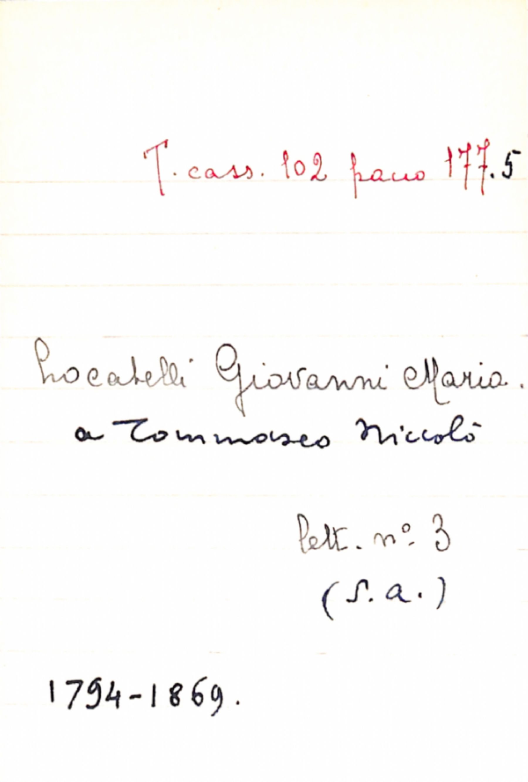 Fascicolo Locatelli, Giovanni Maria a Tommaseo, Niccolò