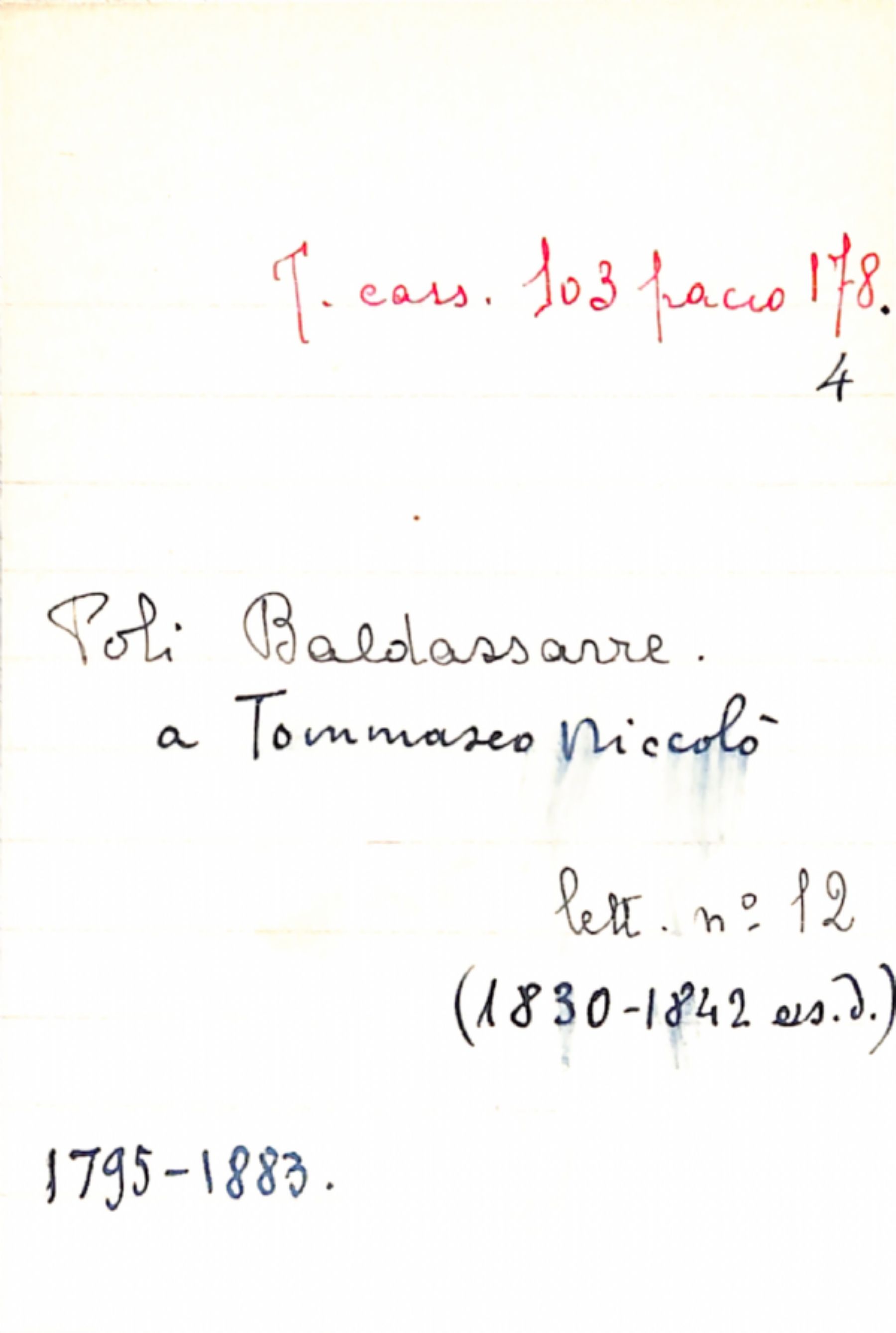 Fascicolo Poli, Baldassarre a Tommaseo, Niccolò