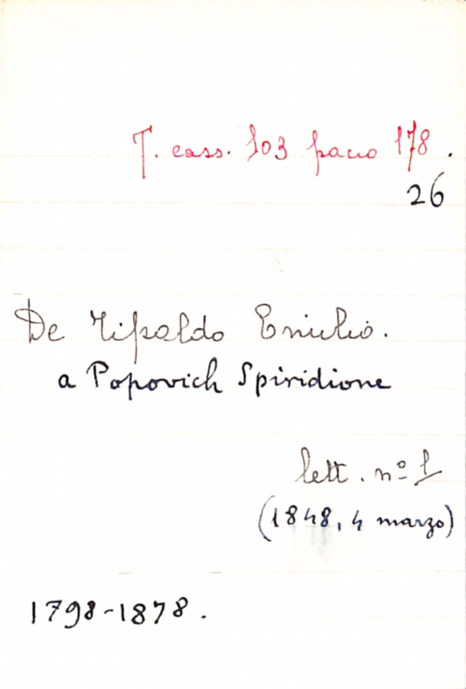 Fascicolo De Tipaldo, Emilio a Popovich, Spiridione