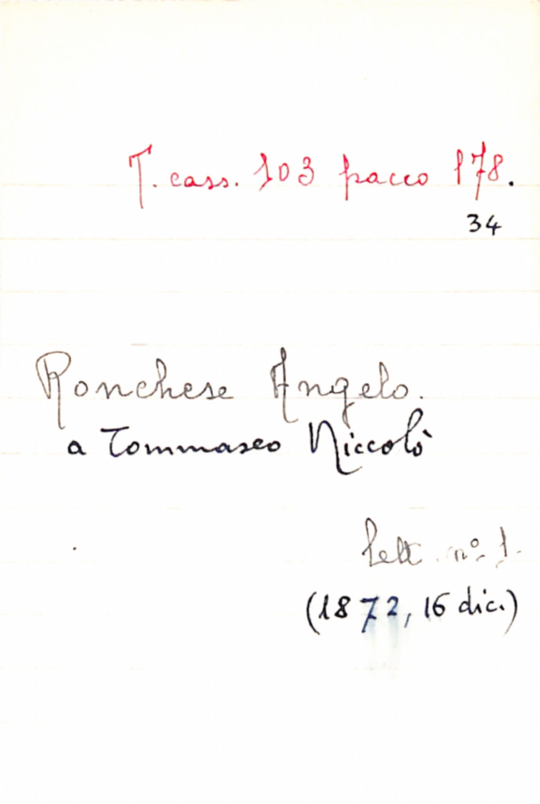 Fascicolo Ronchese, Angelo a Tommaseo, Niccolò