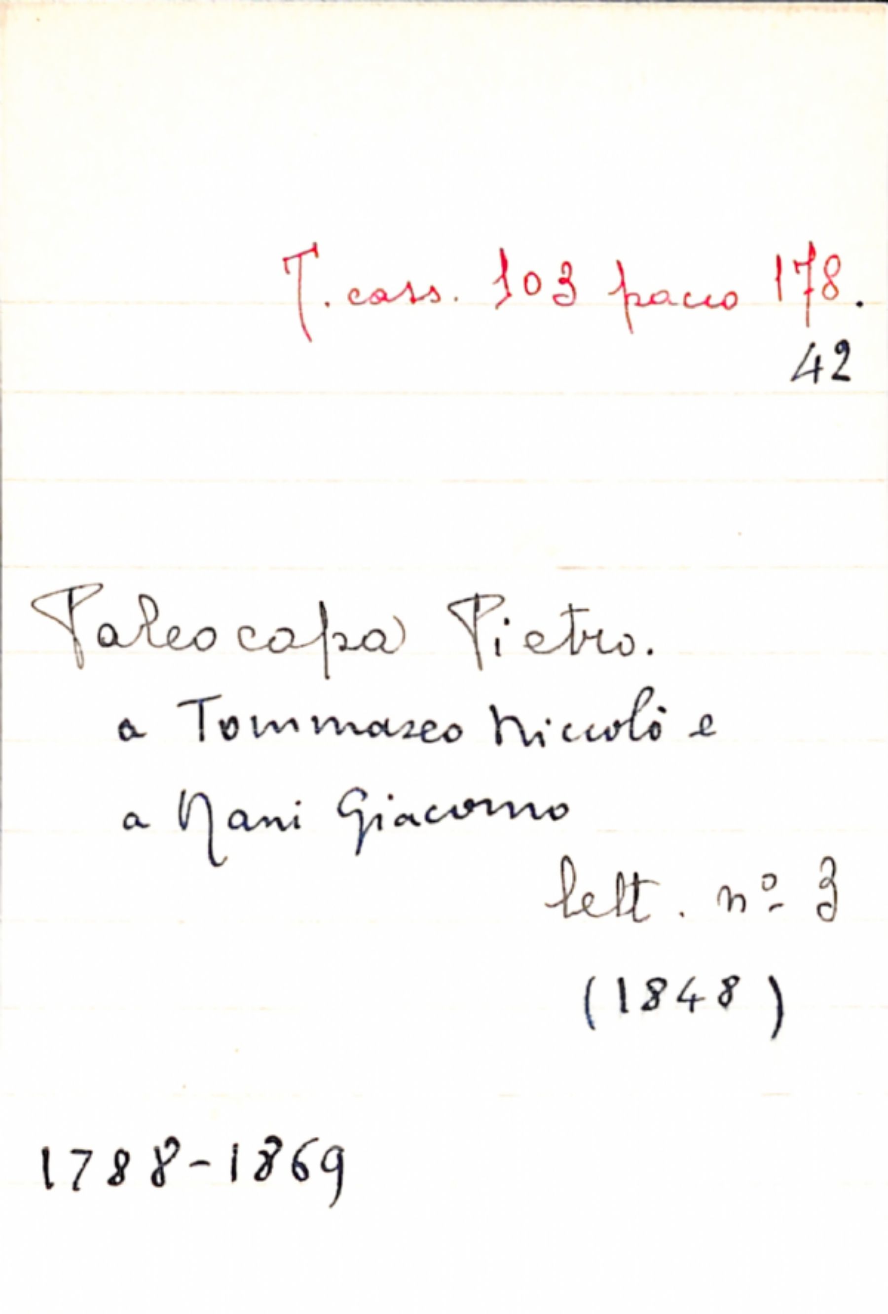 Fascicolo Paleocapa, Pietro a Tommaseo, Niccolò; Nani, Giacomo