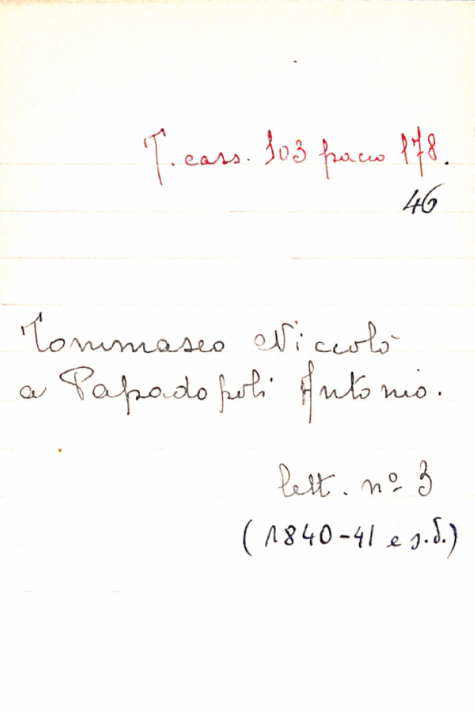 Fascicolo Tommaseo, Niccolò a Papadopoli, Antonio