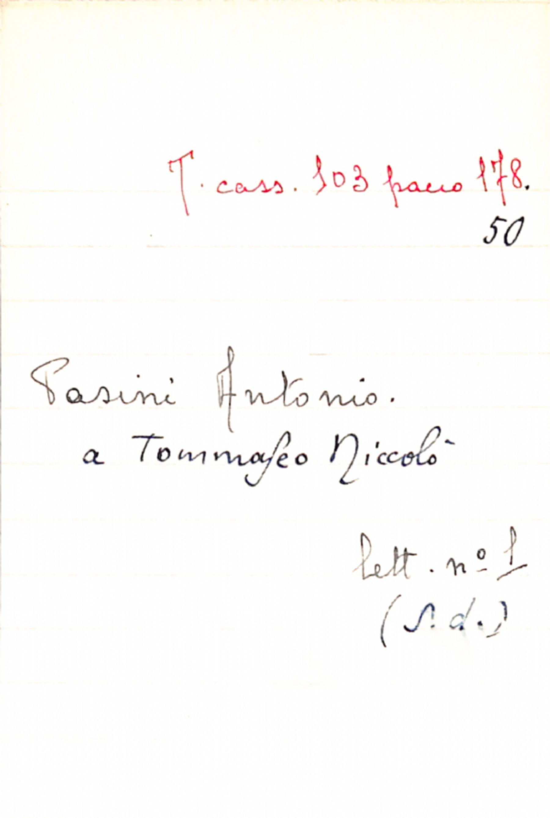 Fascicolo Pasini, Antonio a Tommaseo, Niccolò