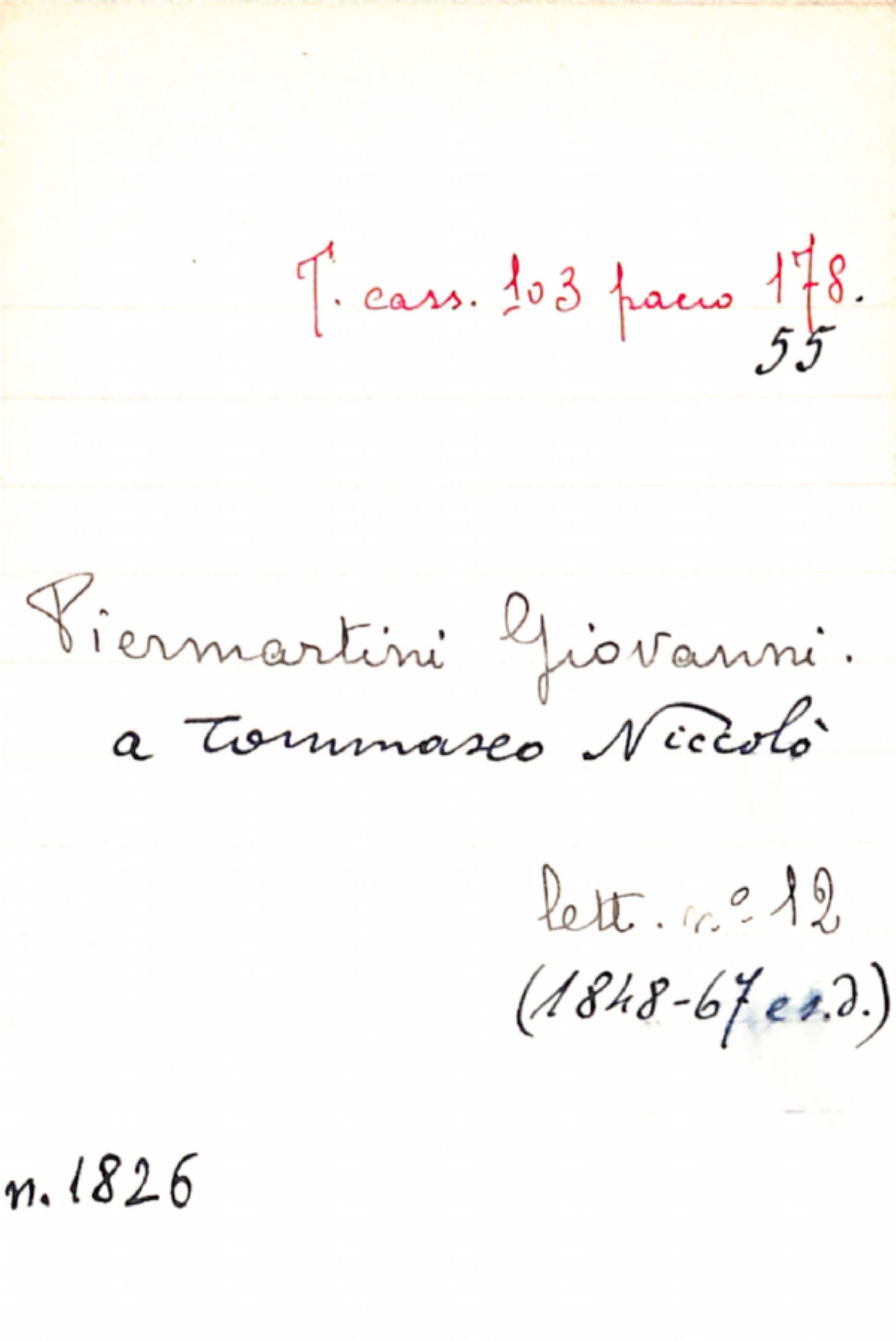 Fascicolo Piermartini, Giovanni a Tommaseo, Niccolò