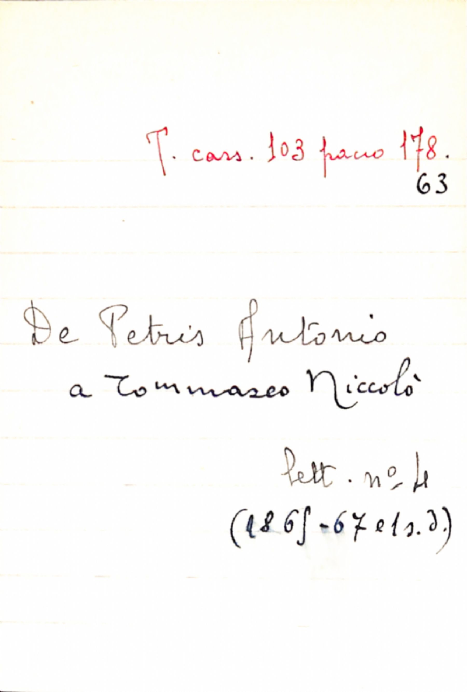 Fascicolo De Petris, Antonio a Tommaseo, Niccolò
