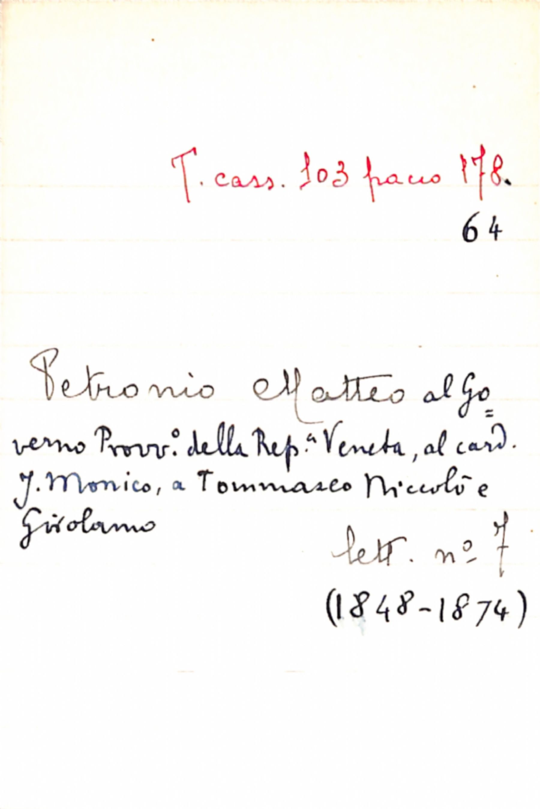 • Petronio, Matteo a Governo Provv.o della Rep.a Veneta; Monico, Jacopo, cardinale; Tommaseo, Niccolò; Tommaseo, Girolamo