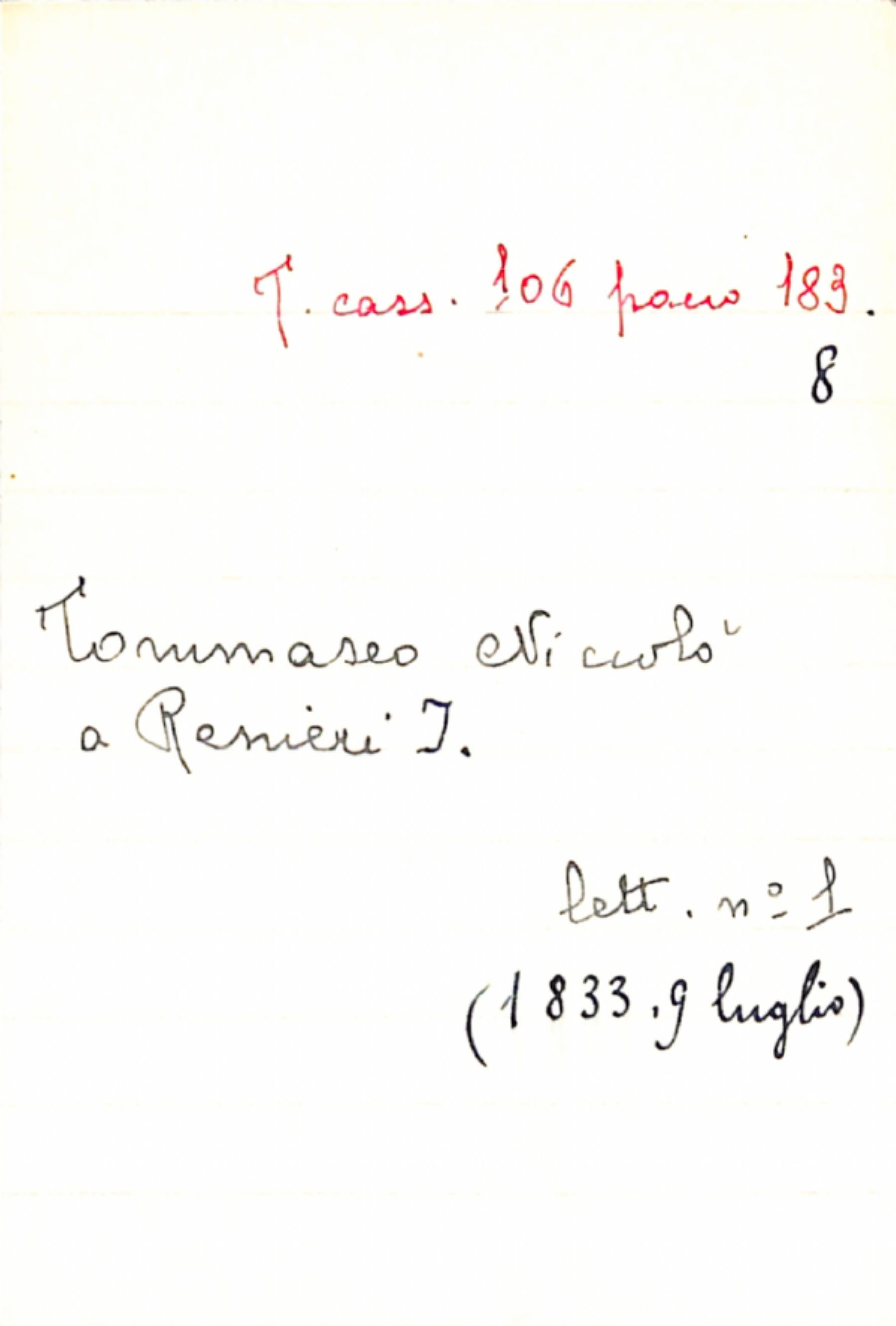 Fascicolo Tommaseo, Niccolò a Renieri, J.