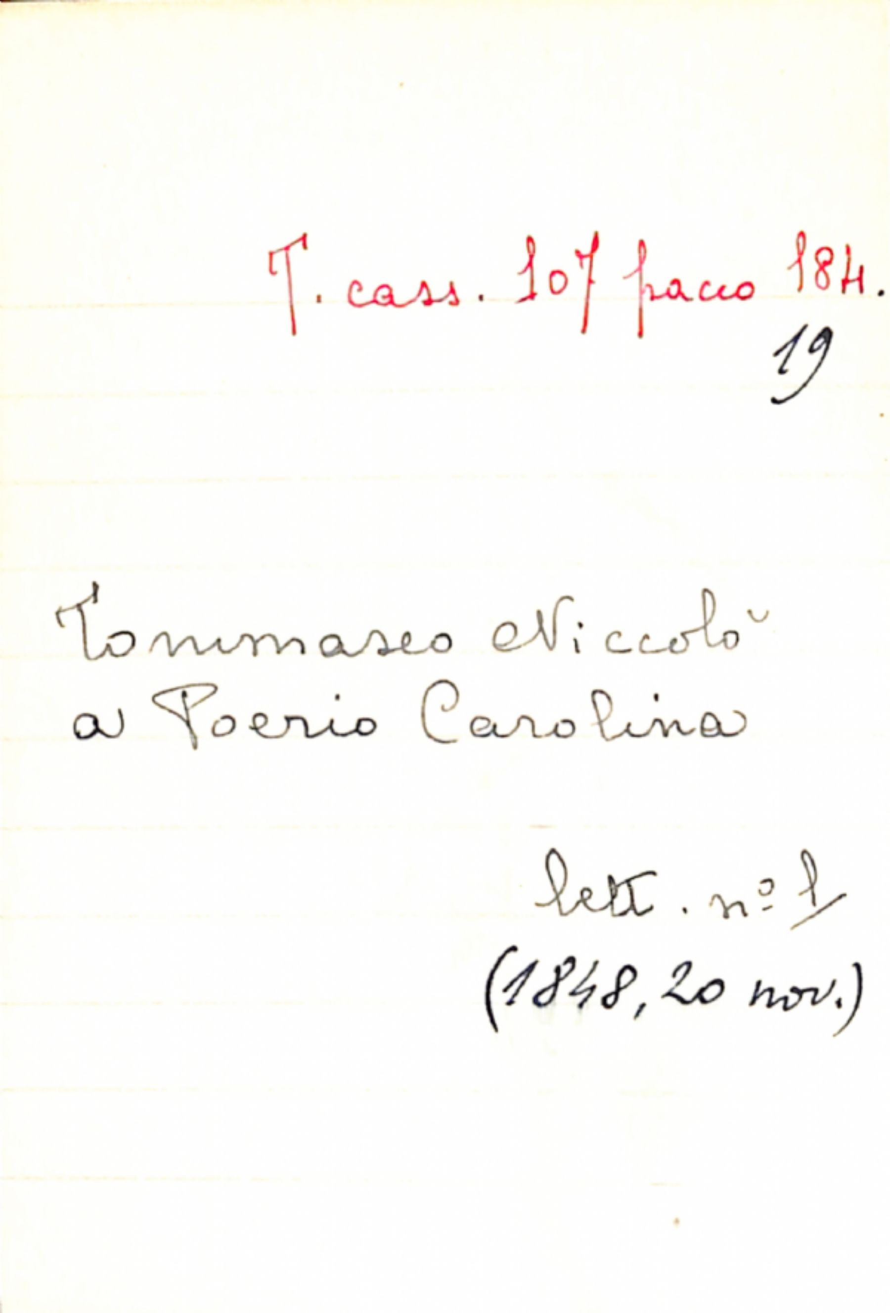 Fascicolo Tommaseo, Niccolò a Poerio, Carolina