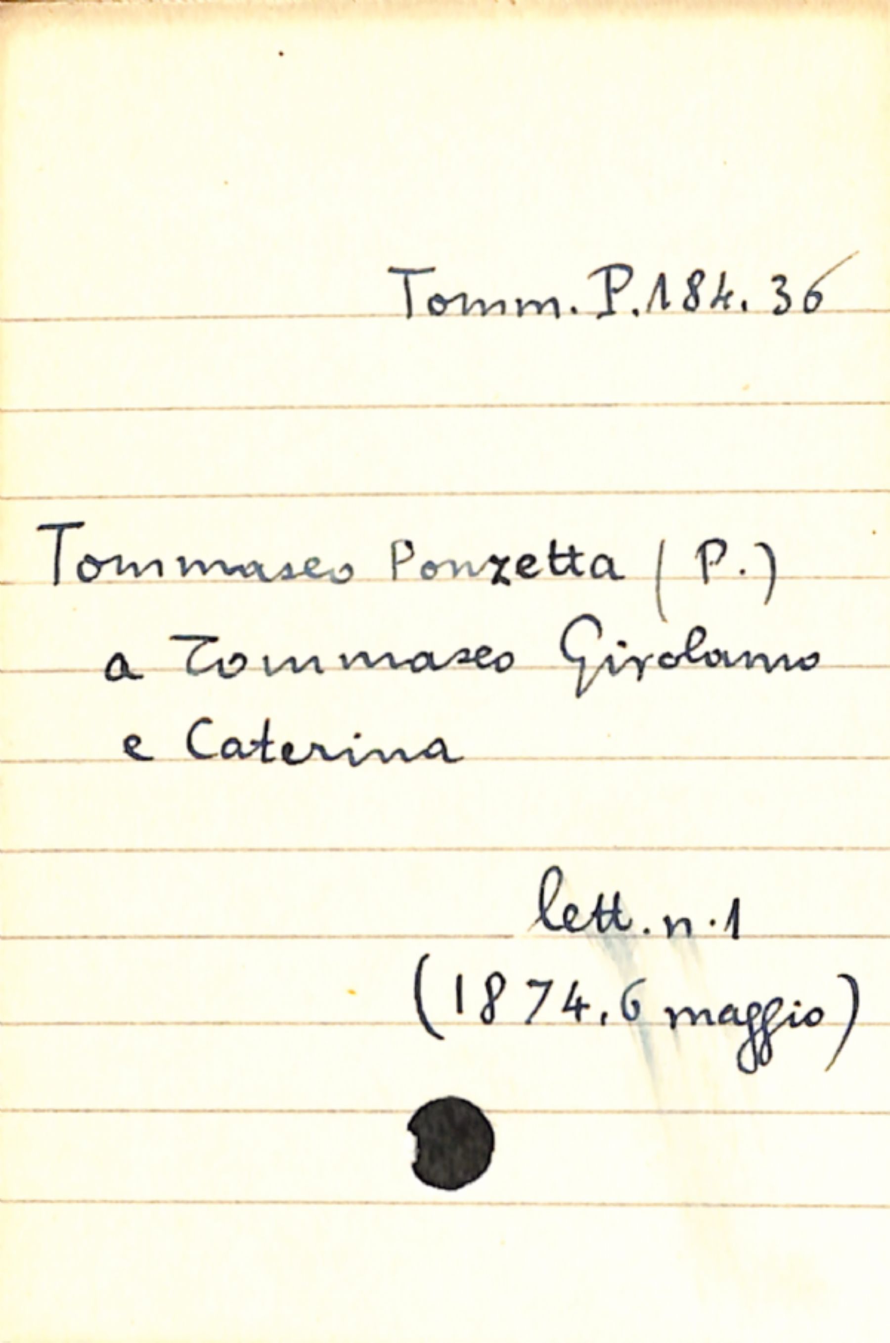 Fascicolo Tommaseo Ponzetta, P. a Tommaseo, Girolamo; Tommaseo, Caterina