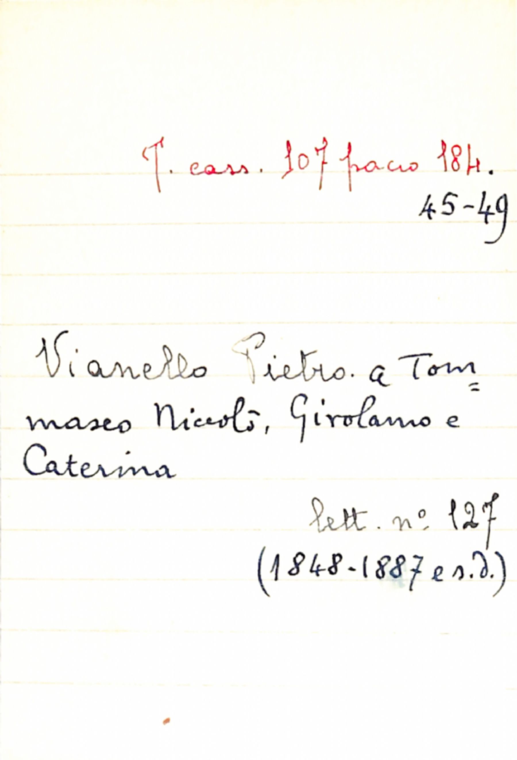 Fascicolo Vianello, Pietro a Tommaseo, Niccolò; Tommaseo, Girolamo; Tommaseo, Caterina