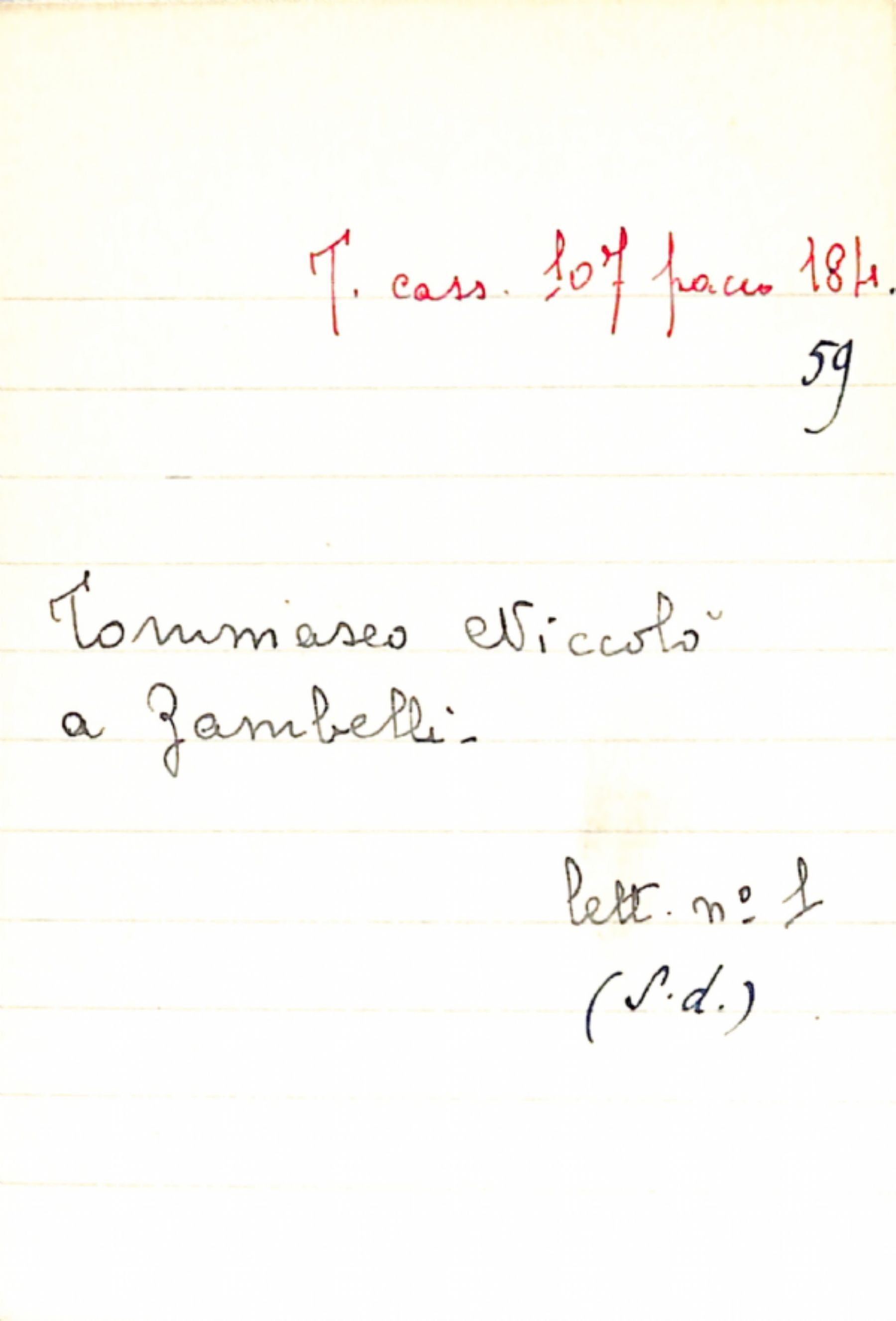 Fascicolo Tommaseo, Niccolò a Zambelli