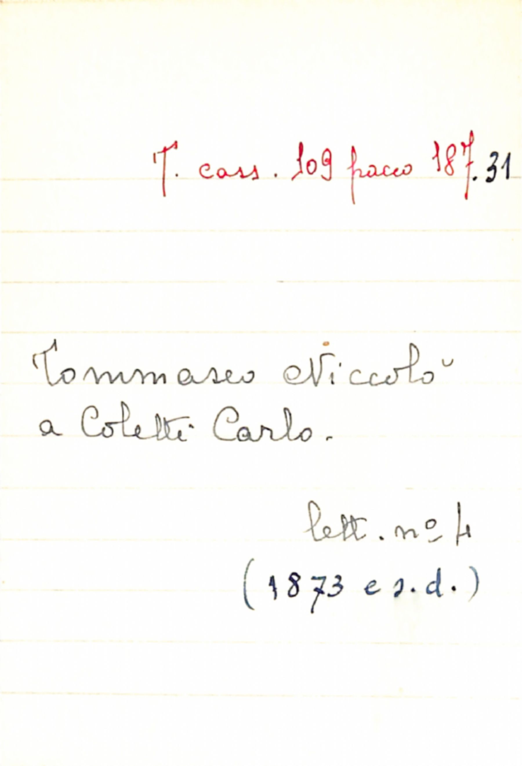 Fascicolo Tommaseo, Niccolò a Coletti, Carlo