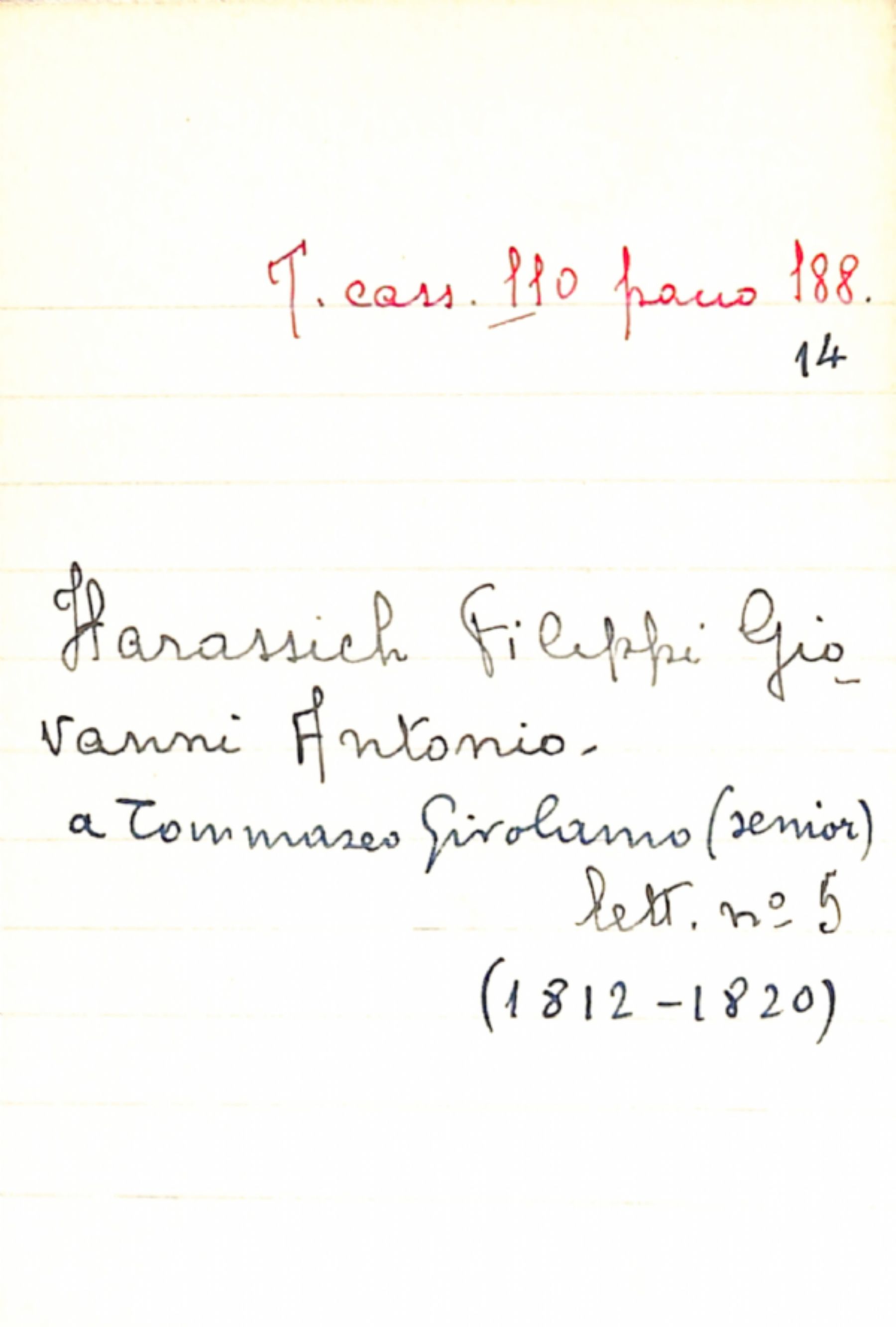 Fascicolo Harassich Filippi, Giovanni Antonio a Tommaseo, Girolamo (senior)