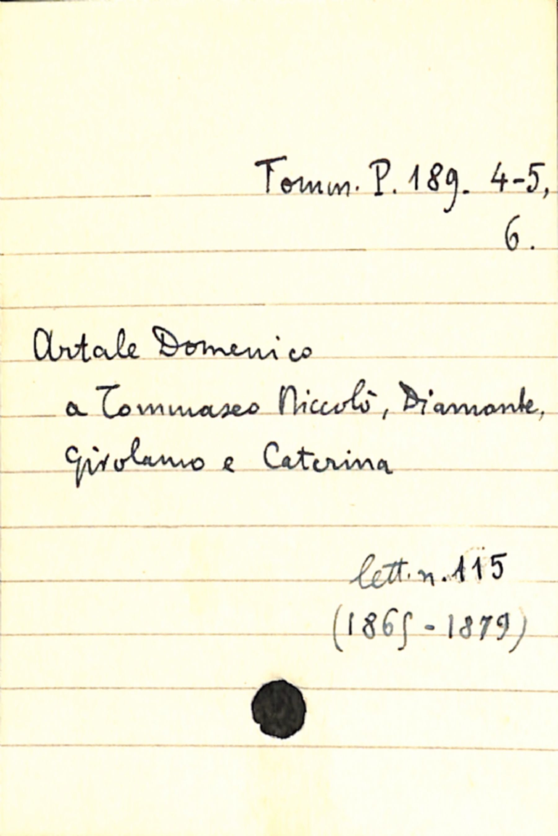 Fascicolo Artale, Domenico a Tommaseo, Niccolo; Tommaseo, Diamante; Tommaseo, Girolamo; Tommaseo, Caterina