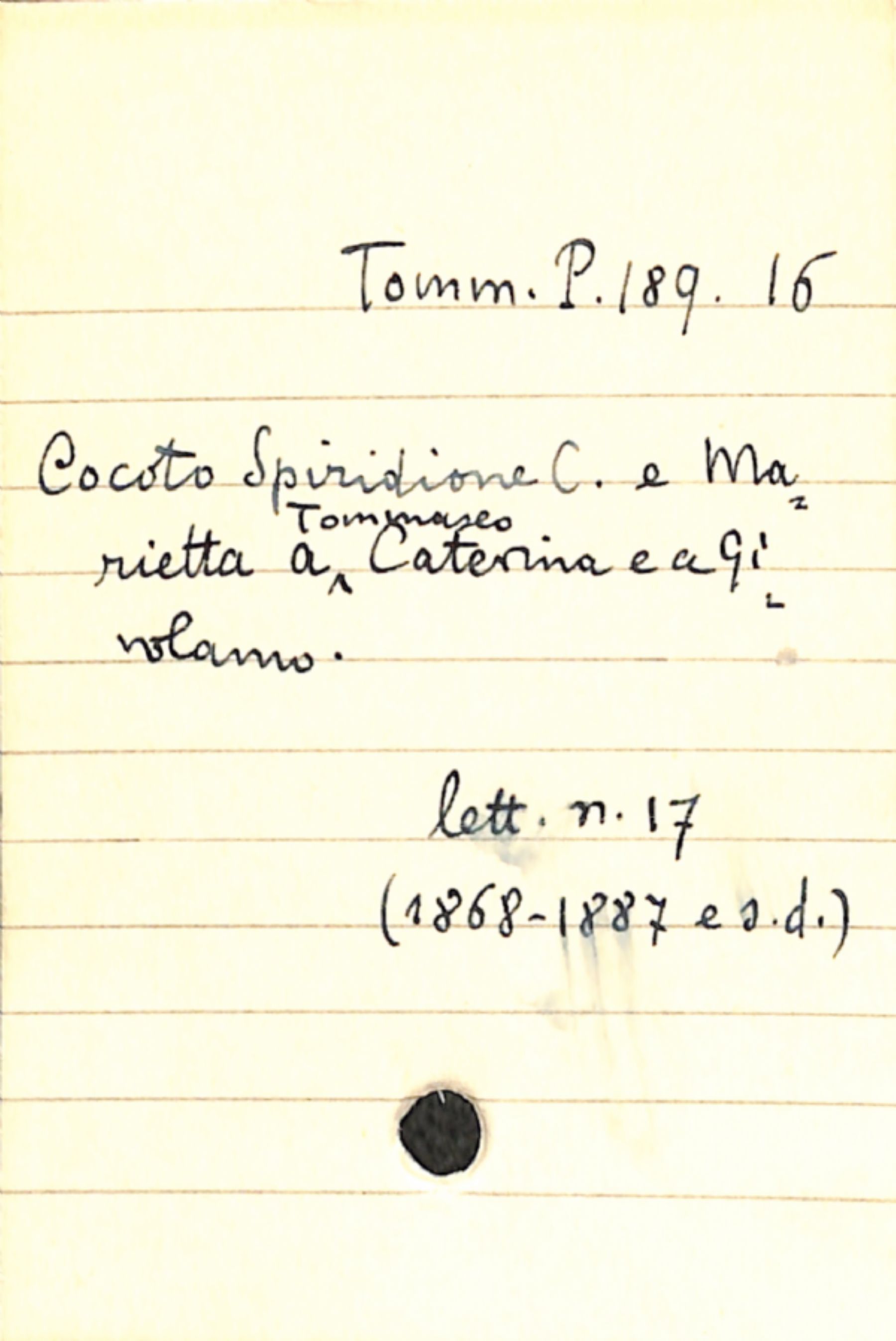 • Cocoto, Spidione C.; Cocoto Marietta a Tommaseo, Caterina; Tommaseo, Girolamo