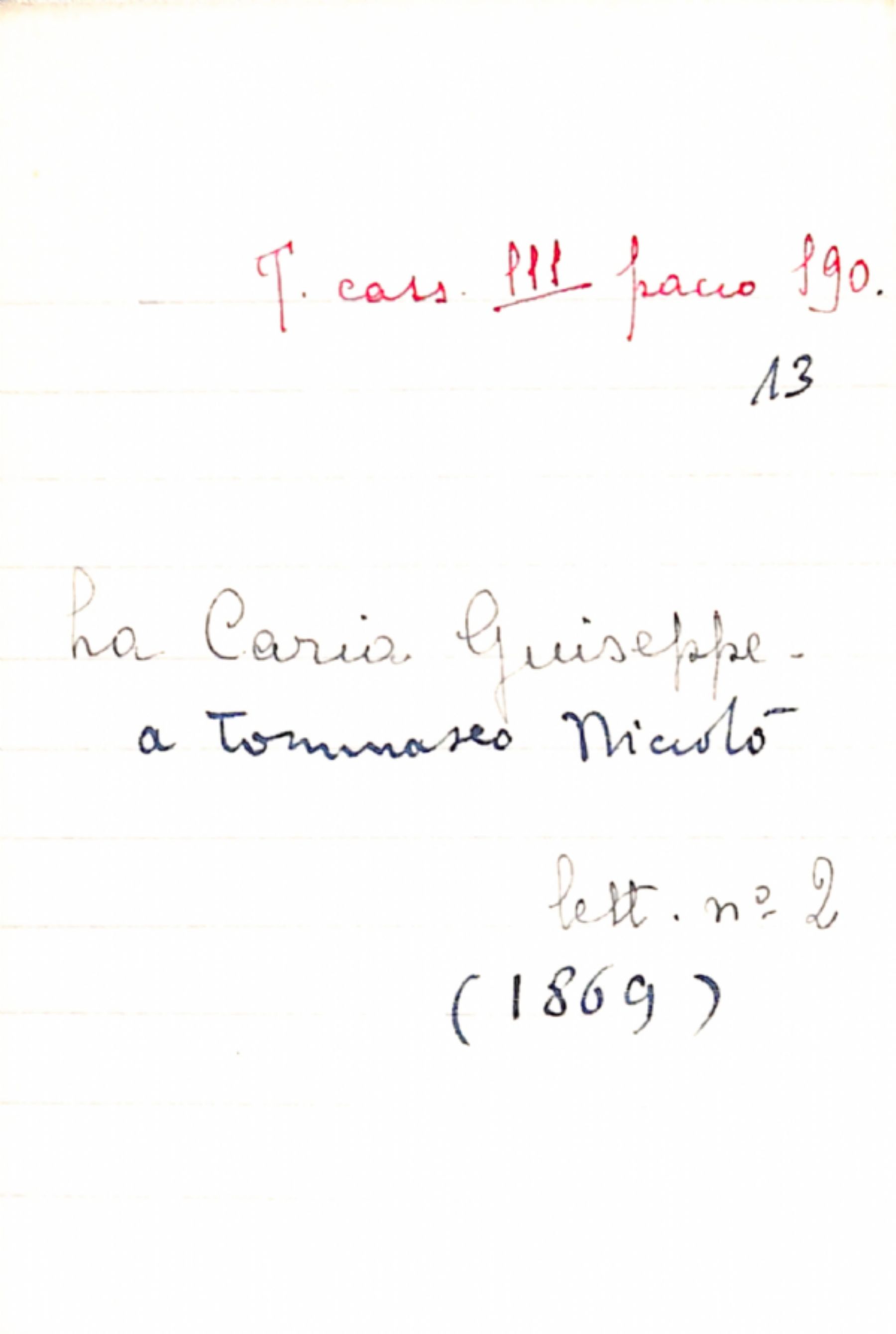 Fascicolo La Caria, Giuseppe a Tommaseo, Niccolò