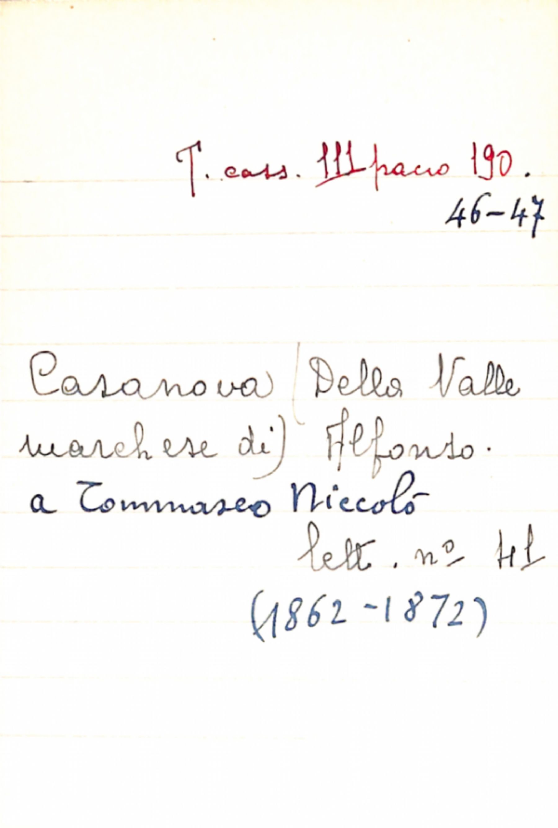 Fascicolo Casanova (Della Valle, marchese di), Alfonso a Tommaseo, Niccolò
