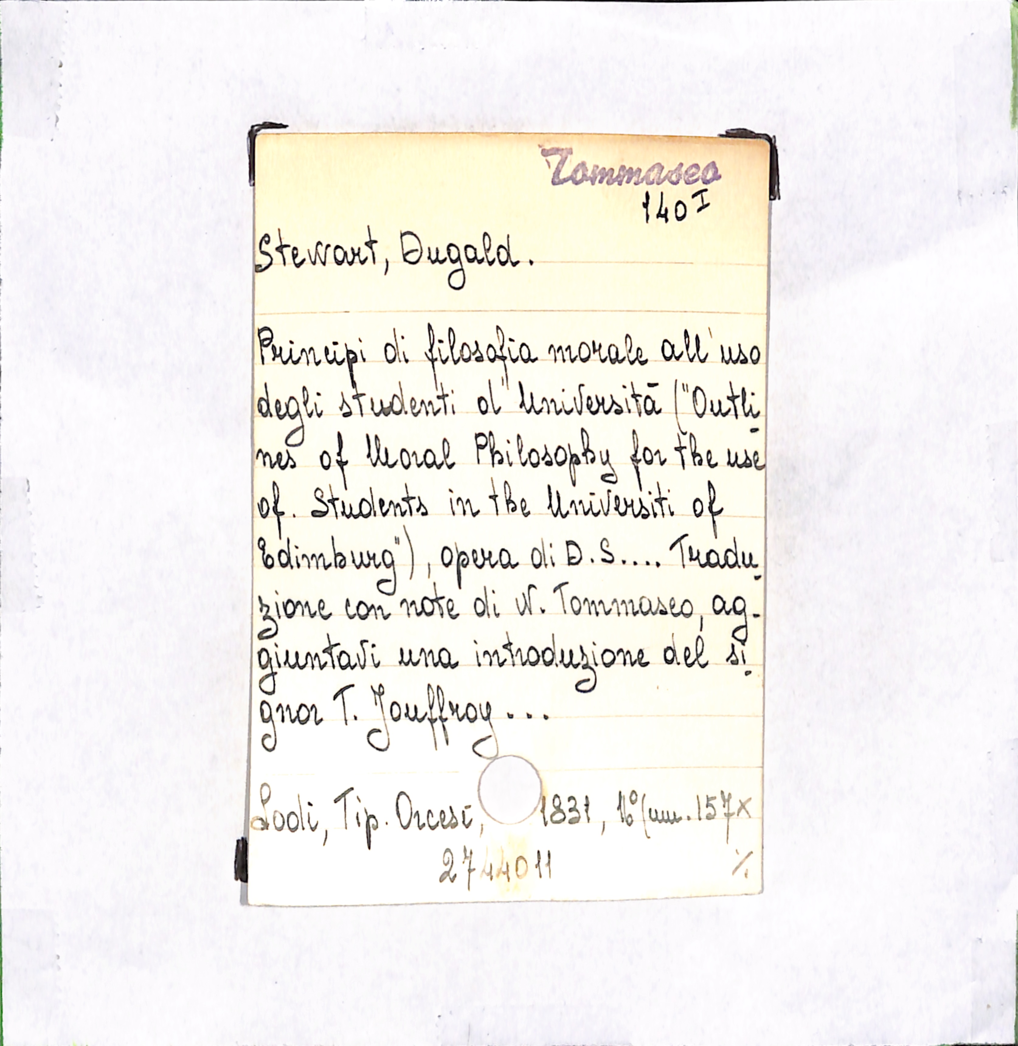 U.D. monografia Principi di filosofia morale all'uso degli studenti d'Università ("Outlines of Moral Philosophy for the use of Students in the Universiti of Edimburg")