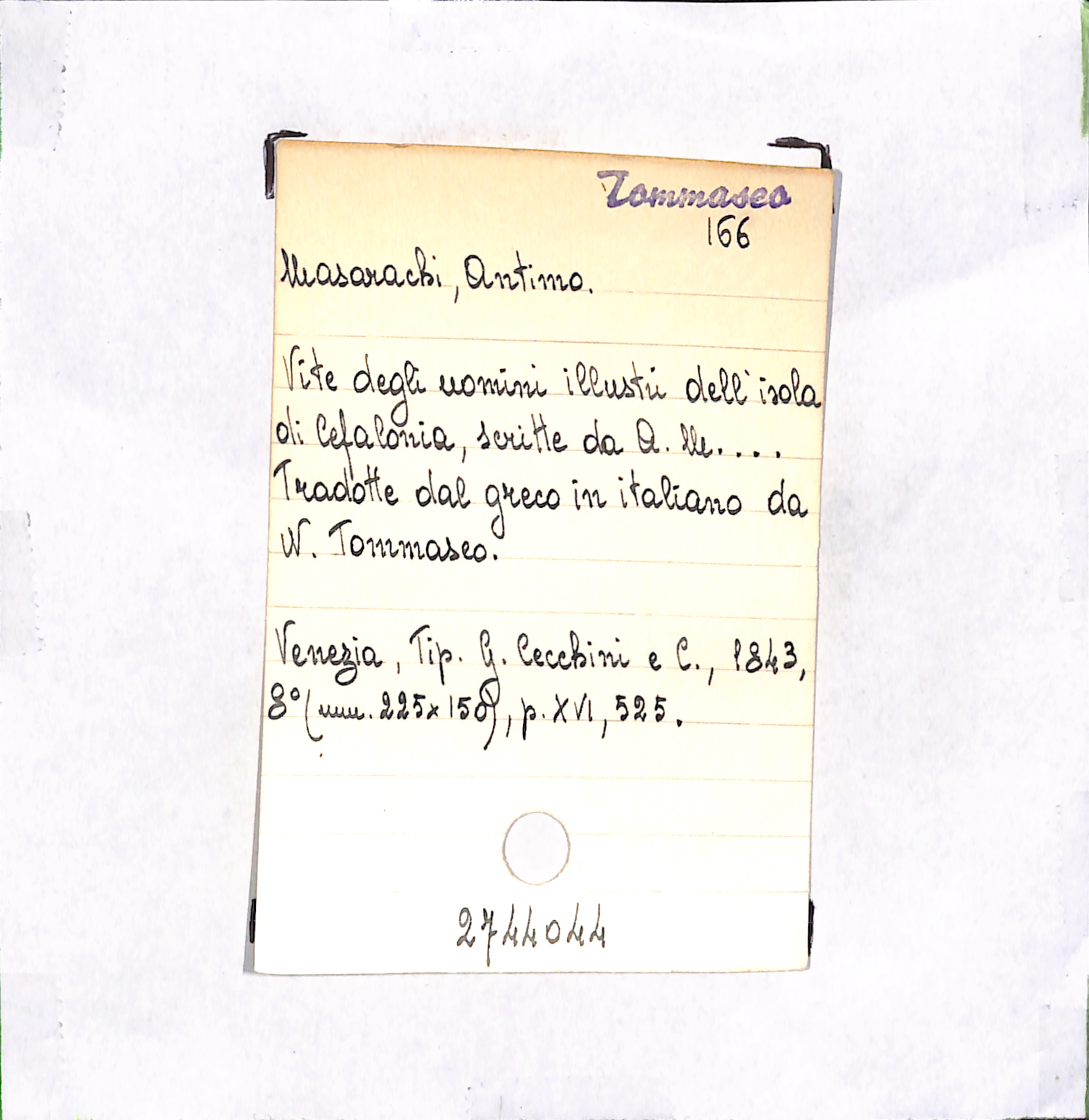 U.D. monografia Vite degli uomini illustri dell'isola di Cefalonia, scritte da A. M. …