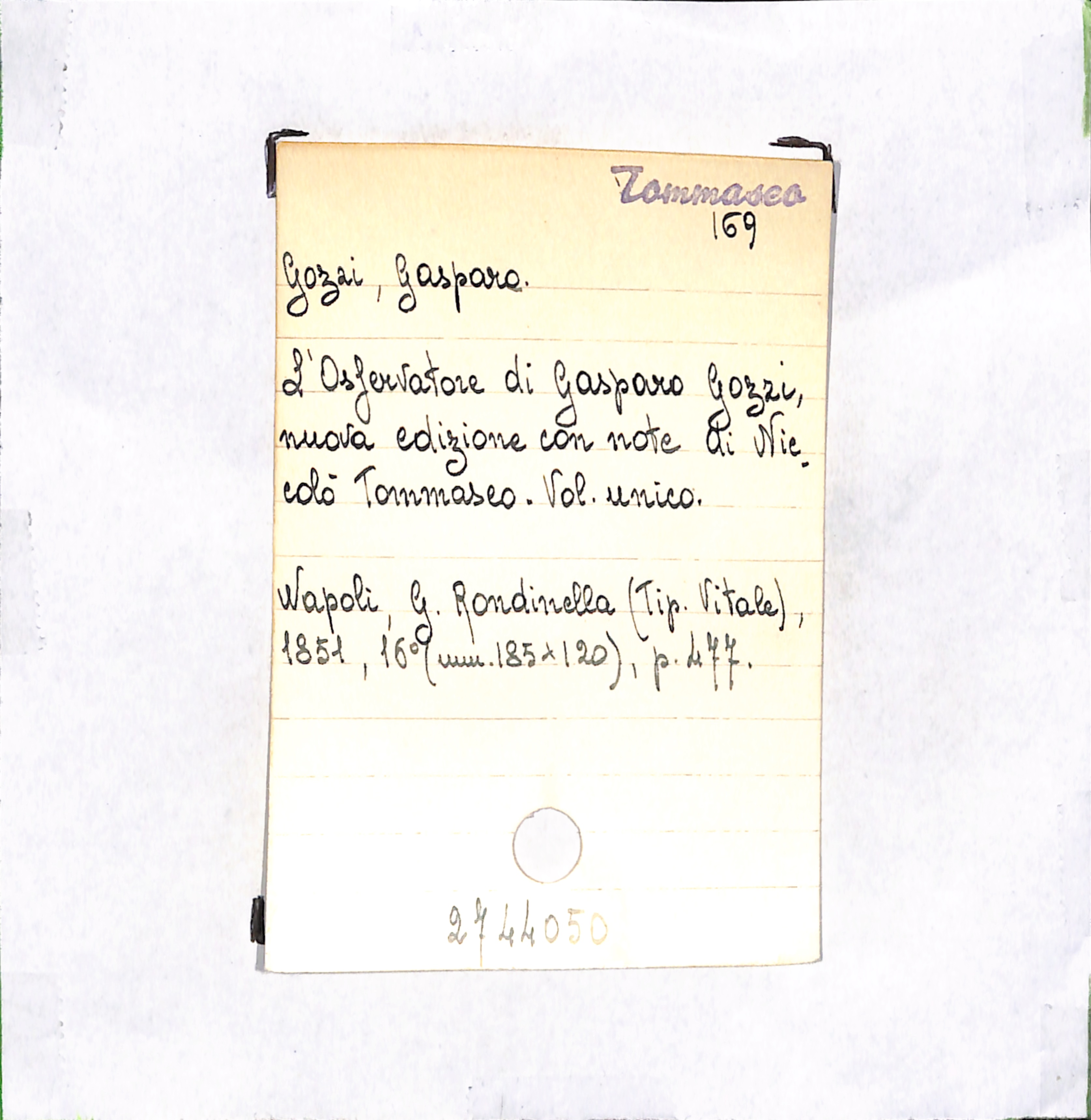 U.D. monografia L'osservatore di Gasparo Gozzi, nuova edizione con note di Niccolò Tommaseo