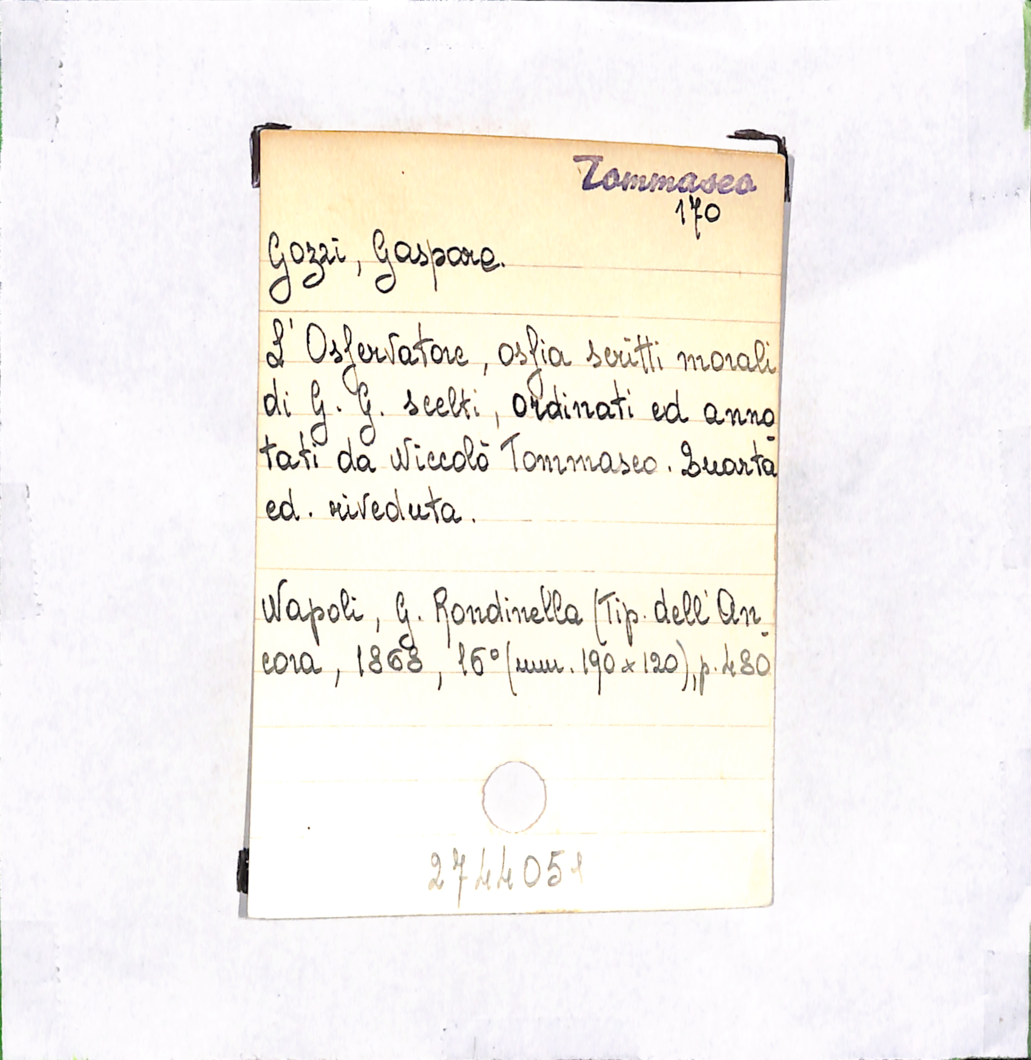 U.D. monografia L'Osservatore, ossia scritti morali di G. G. scelti, ordinati ed annotati da Niccolò Tommaseo
