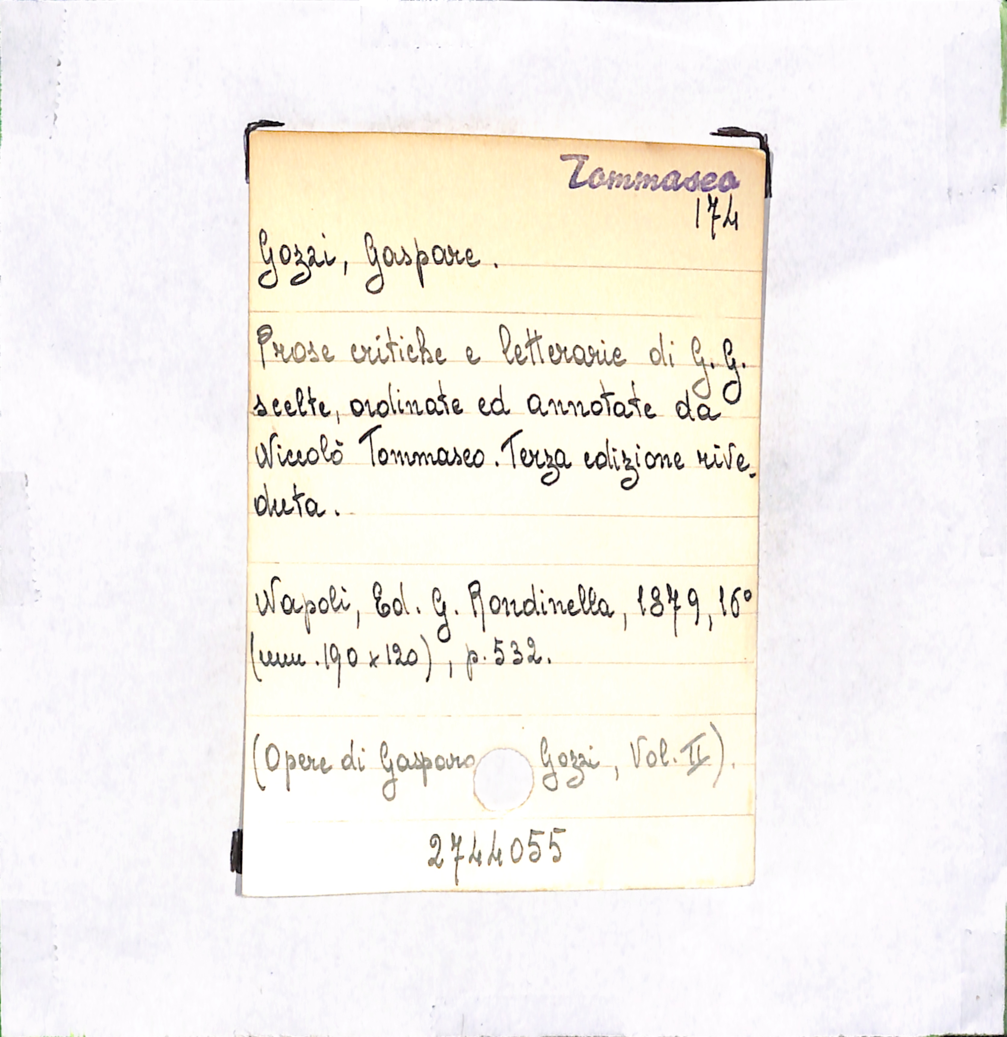U.D. monografia Prose critiche e letterarie di G. G. scelte, ordinate ed annotate da Niccolò Tommaseo