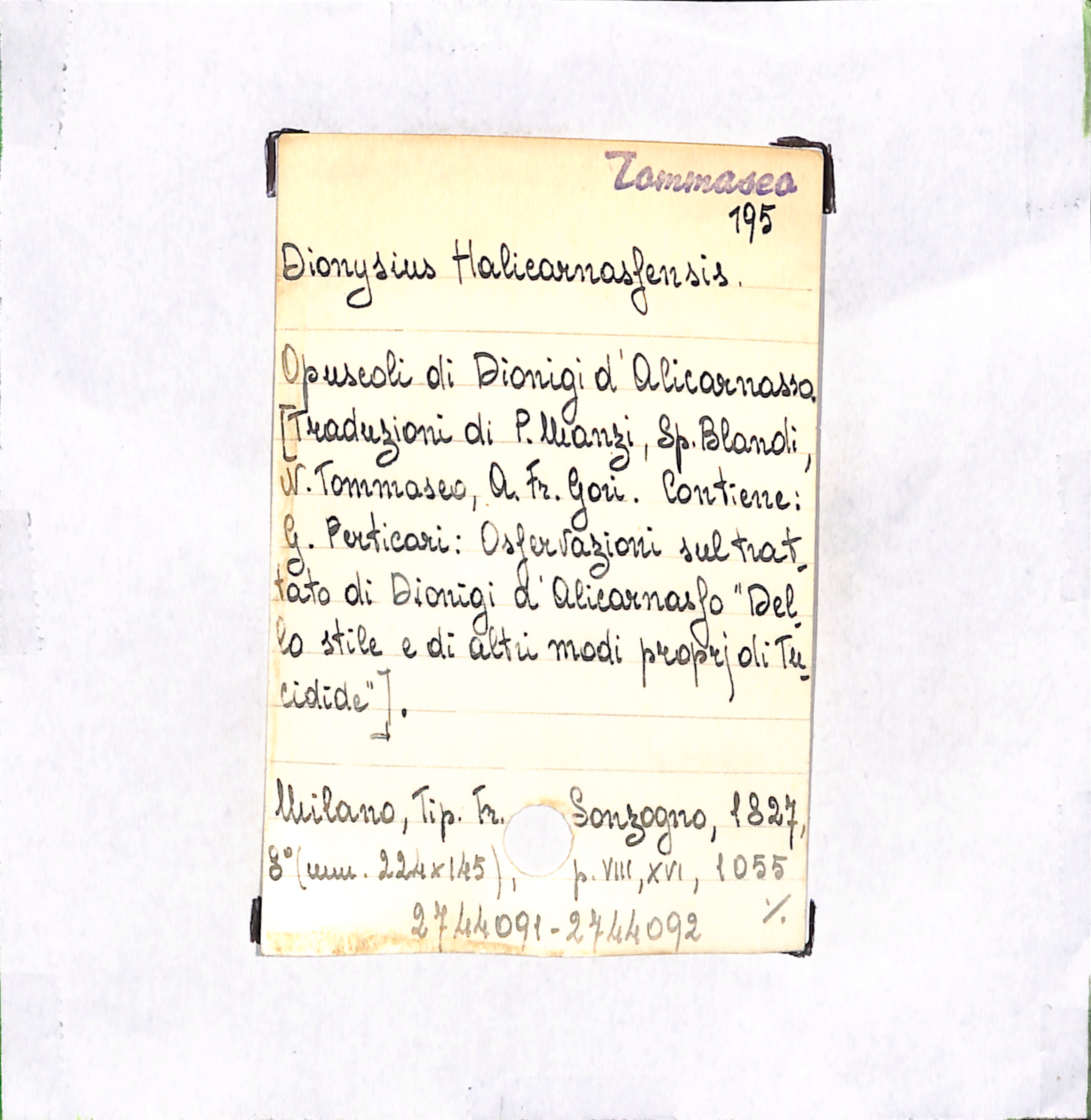 U.D. monografia Opuscoli di Dionigi d'Alicarnasso