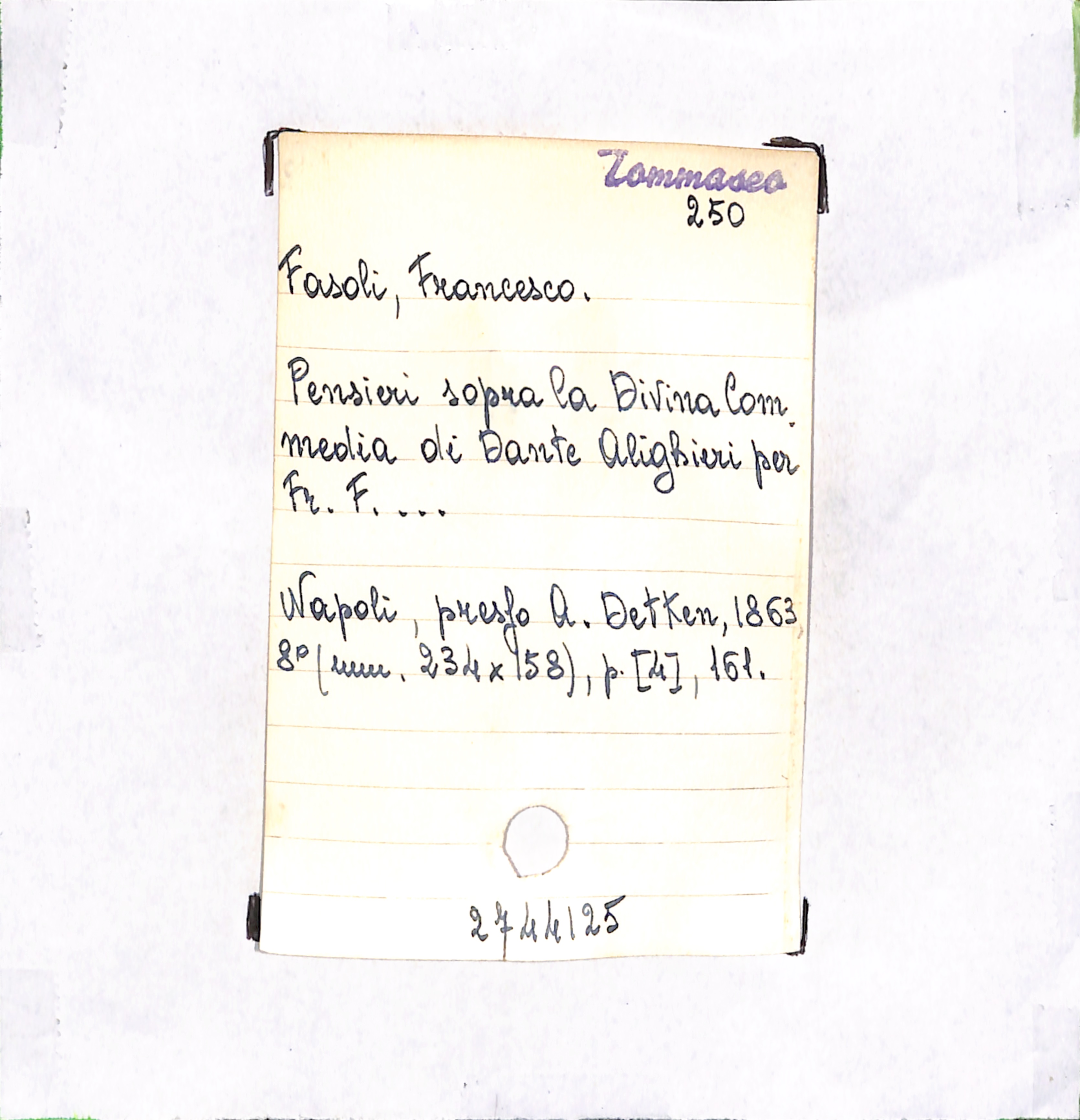 U.D. monografia Pensieri sopra la Divina Commedia di Dante Alighieri per Fr. F. …