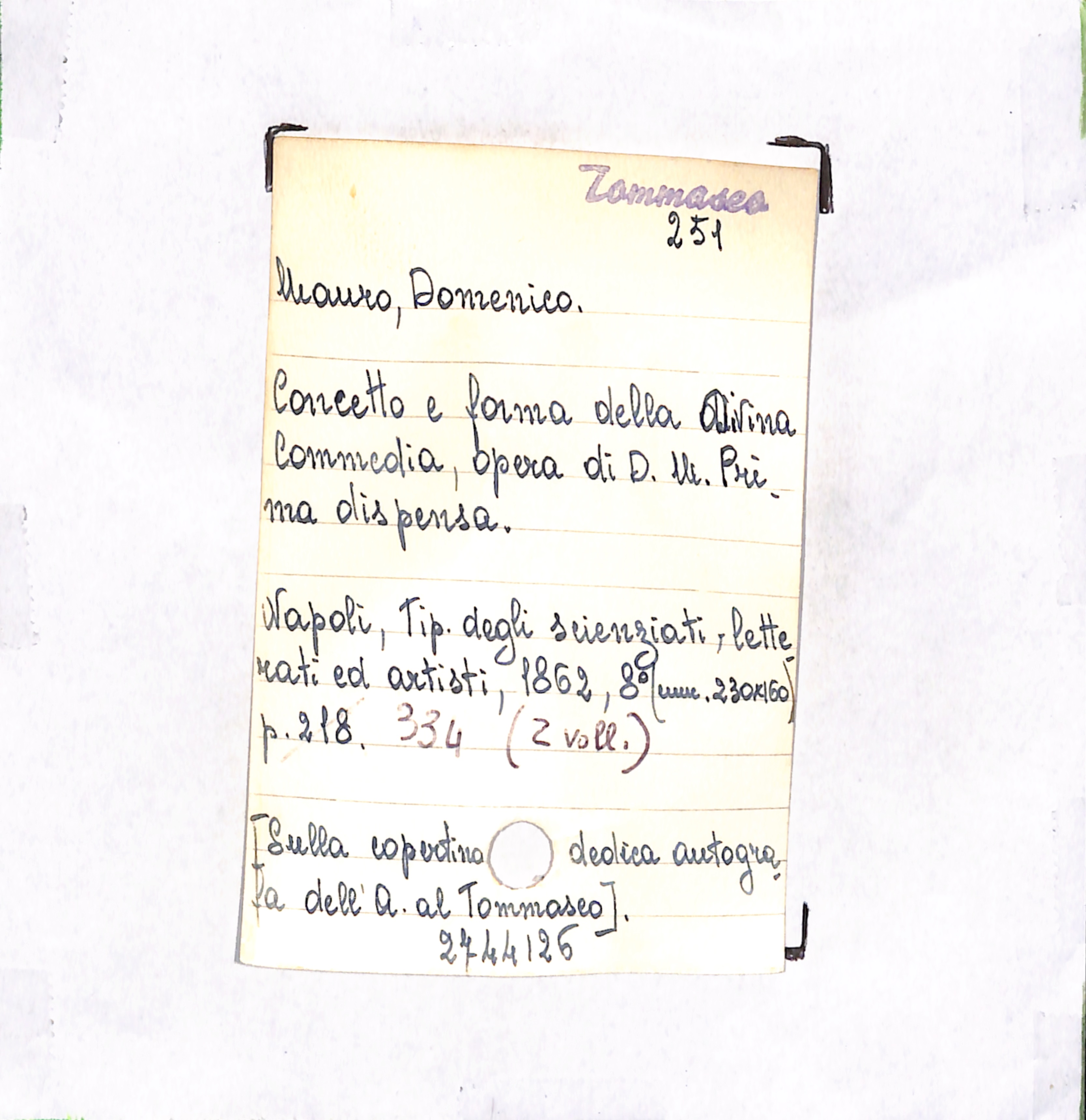 U.D. monografia Concetto e forma della Divina Commedia, opera di D. M.