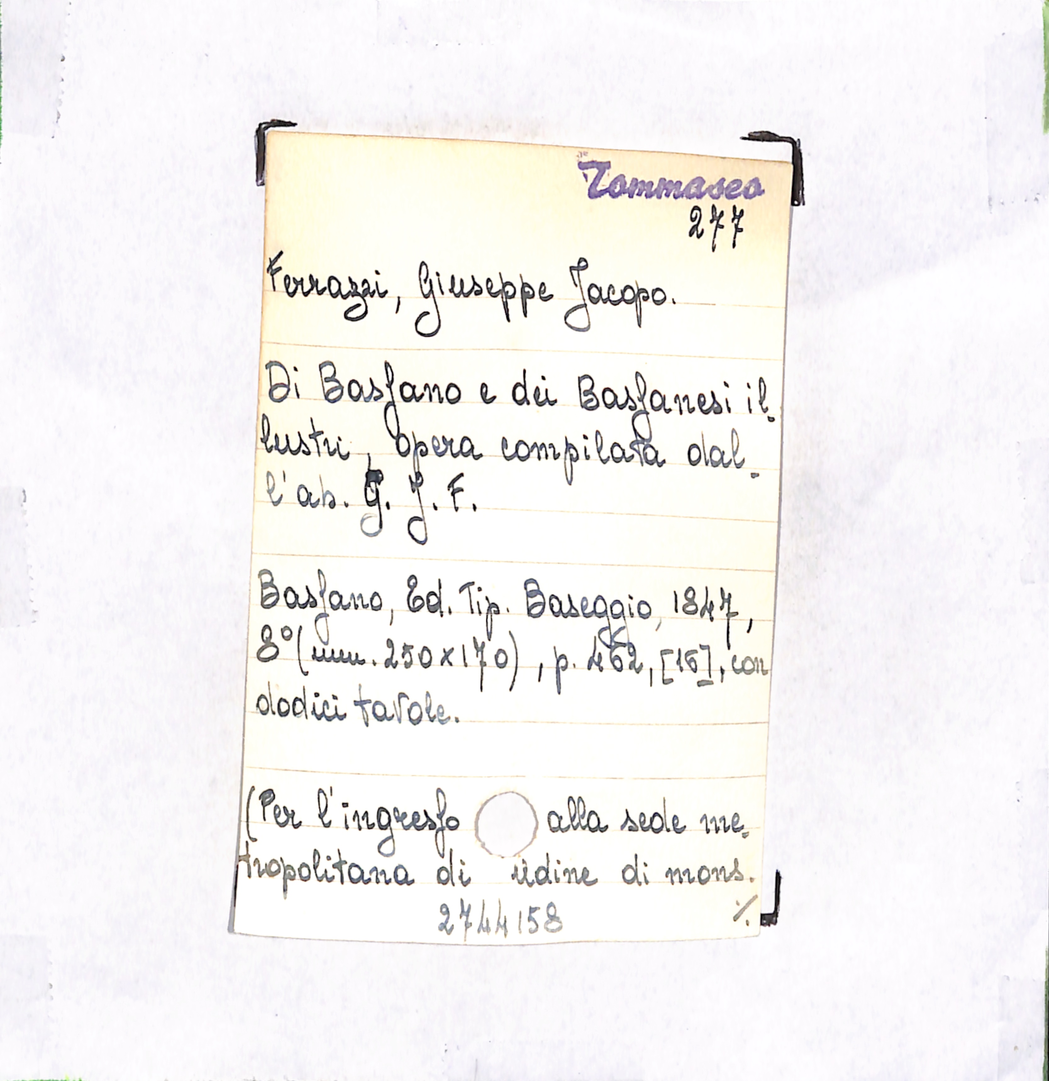 U.D. monografia Di Bassano e dei Bassanesi illustri, opera compilata dall'ab. G. J. F.