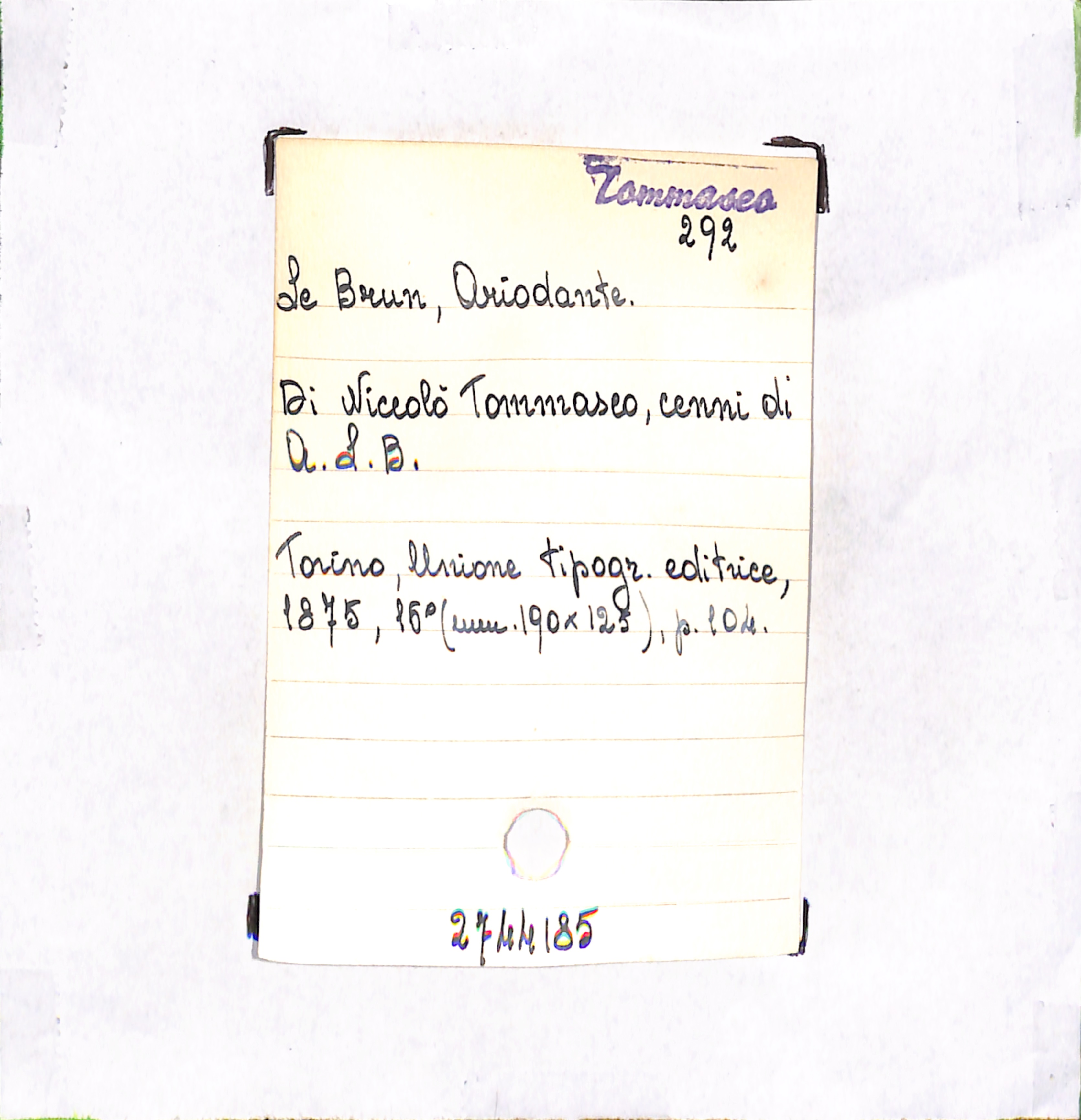 U.D. monografia Di Niccolò Tommaseo, cenni di A. L. B.