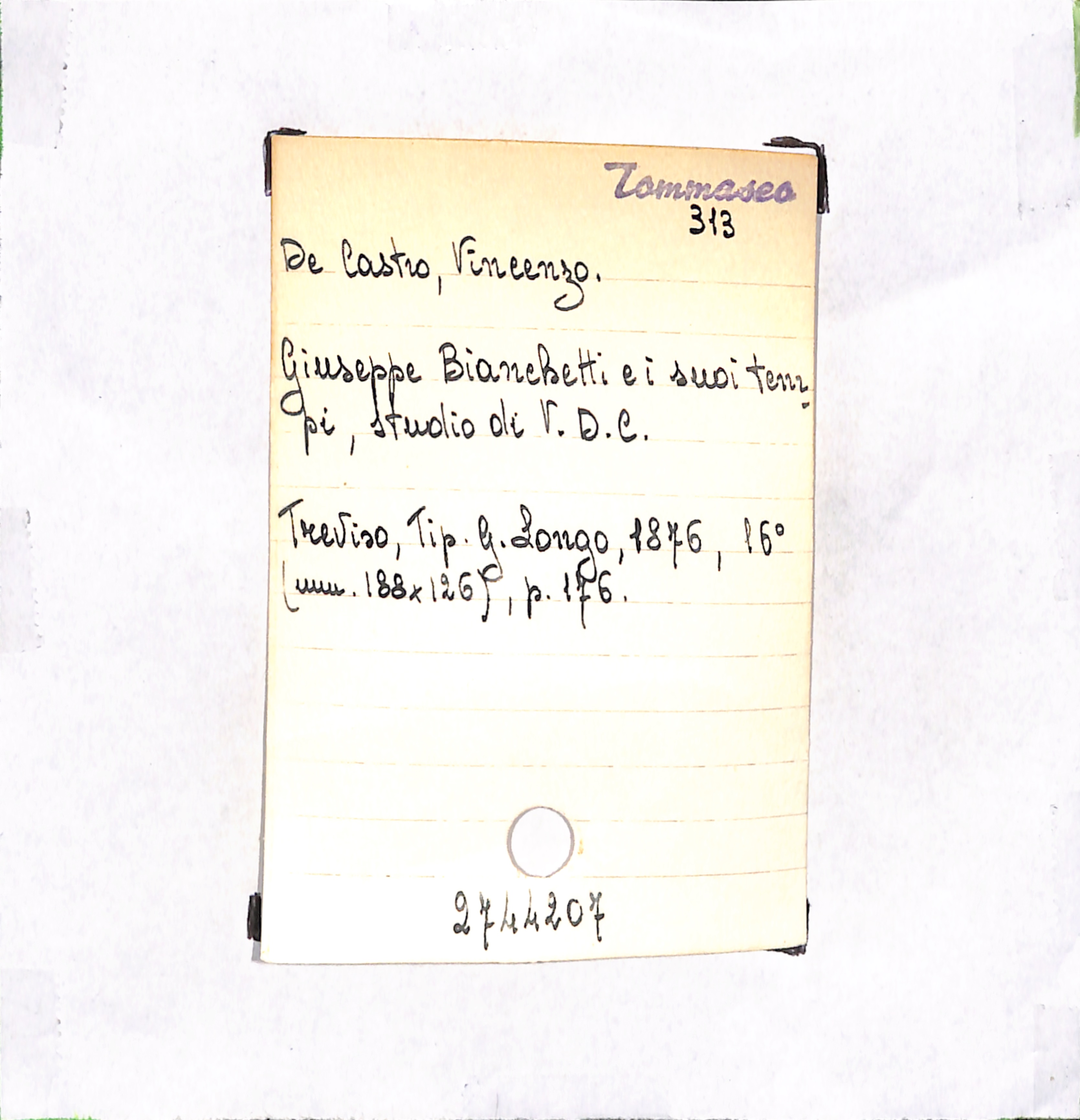• Giuseppe Bianchetti e i suoi tempi, studio di V. D. C.
