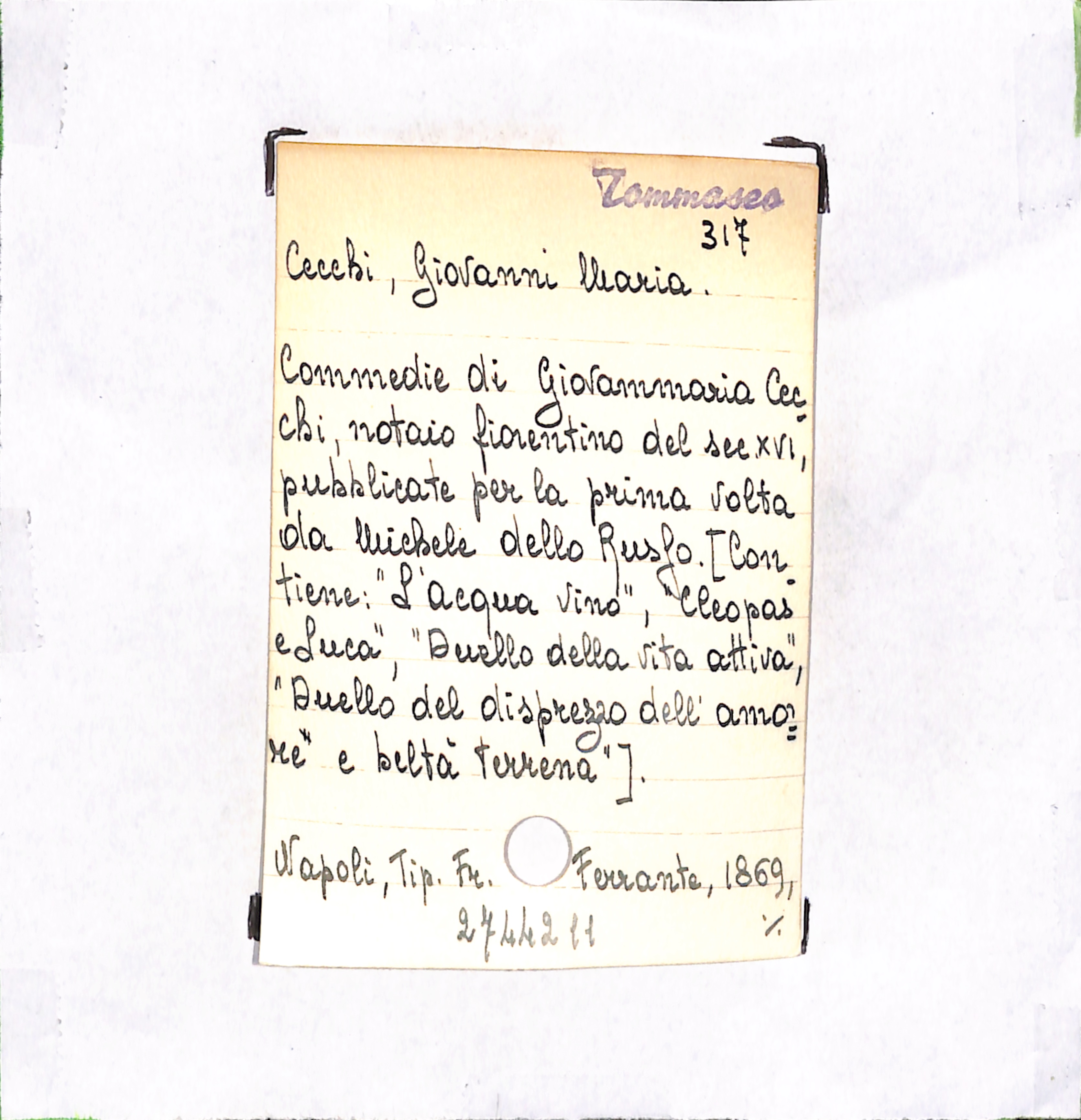 • Commedie di Giovammaria Cecchi, notaio fiorentino del sec XVI, pubblicate per la prima volta da Michele dello Russo