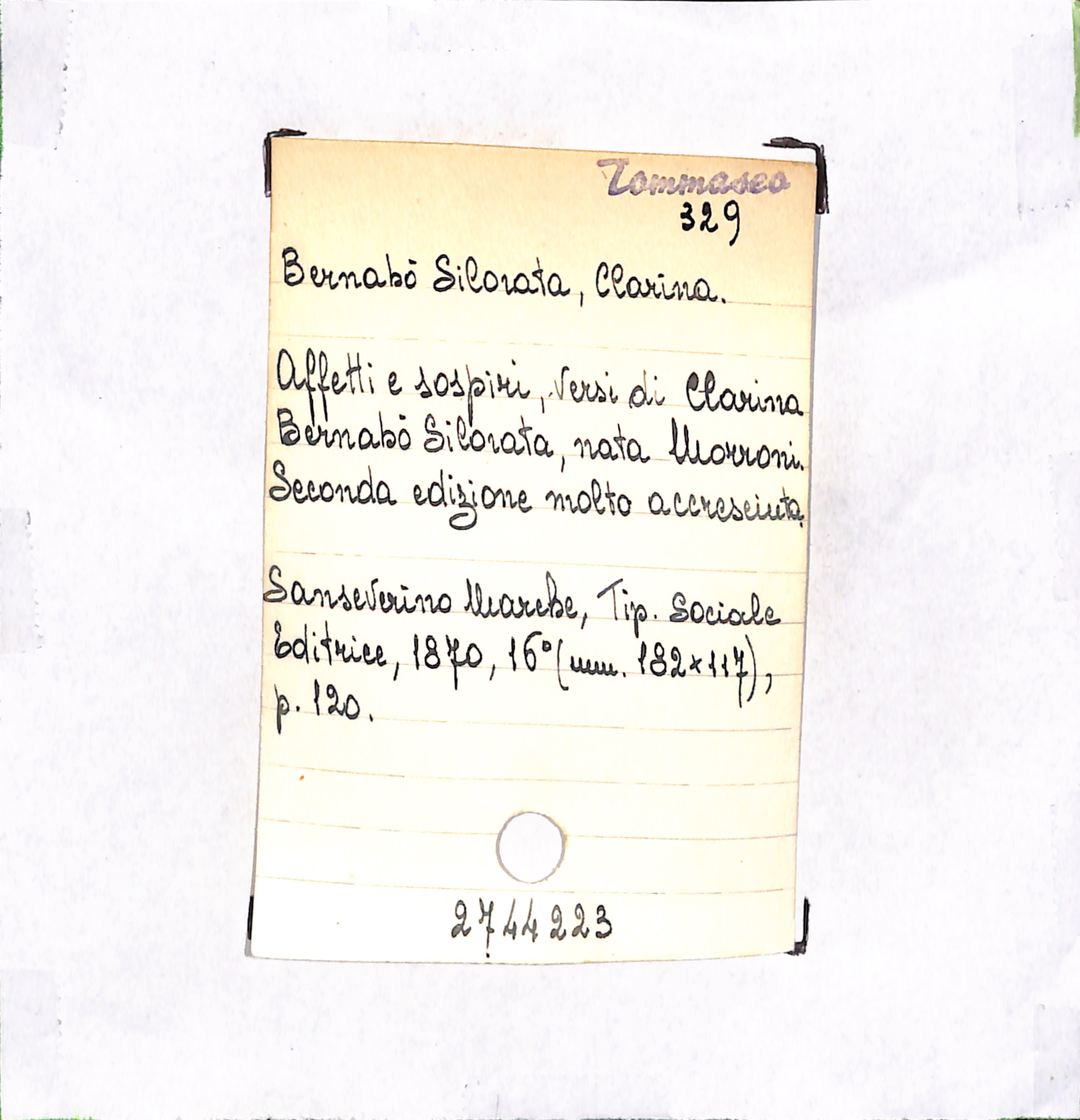 U.D. monografia Affetti e sospiri, versi di Clarina Bernabò Silorata, nata Morroni