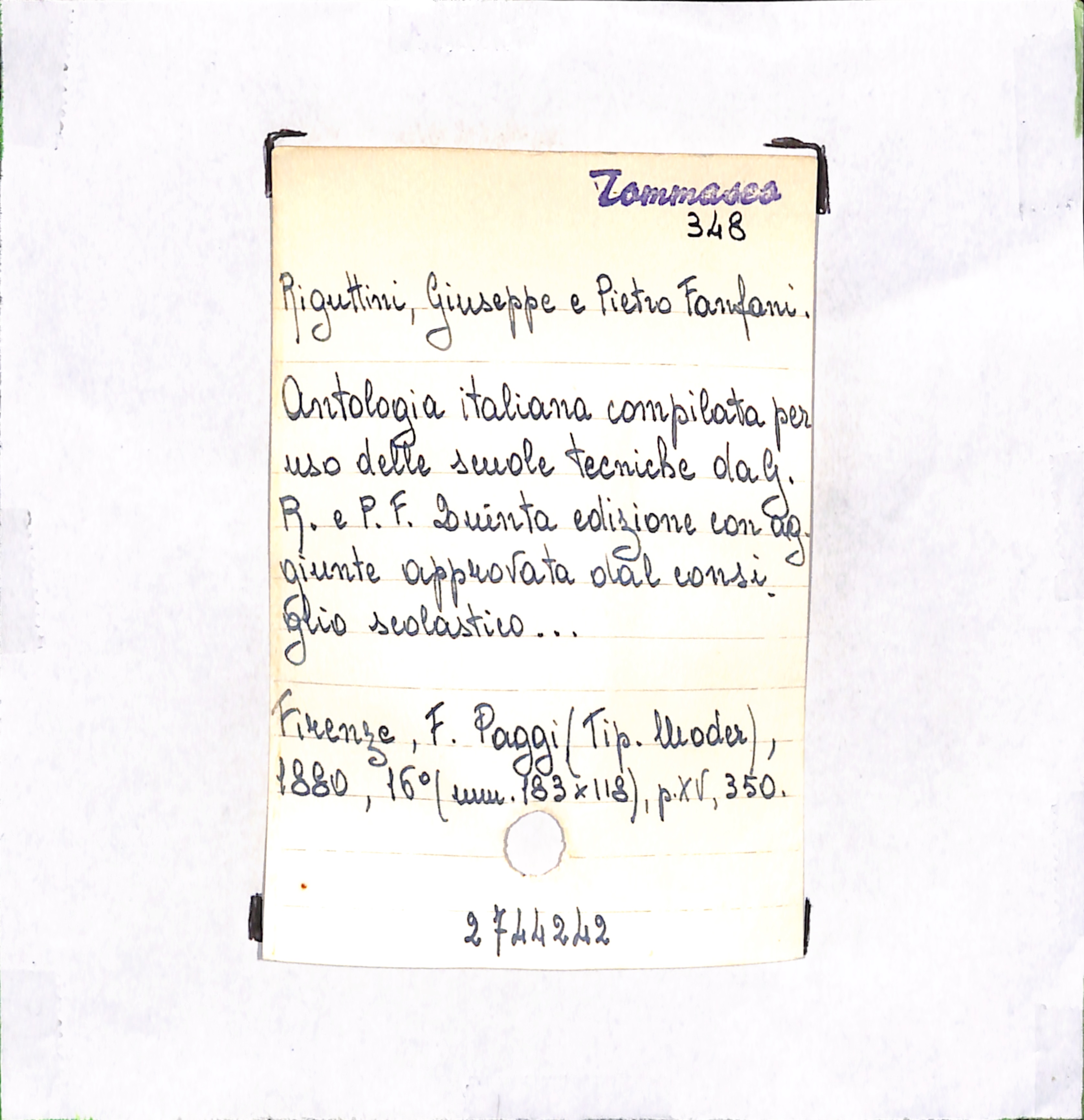 U.D. monografia Antologia italiana compilata per uso delle scuole tecniche da G. R. e P. F.