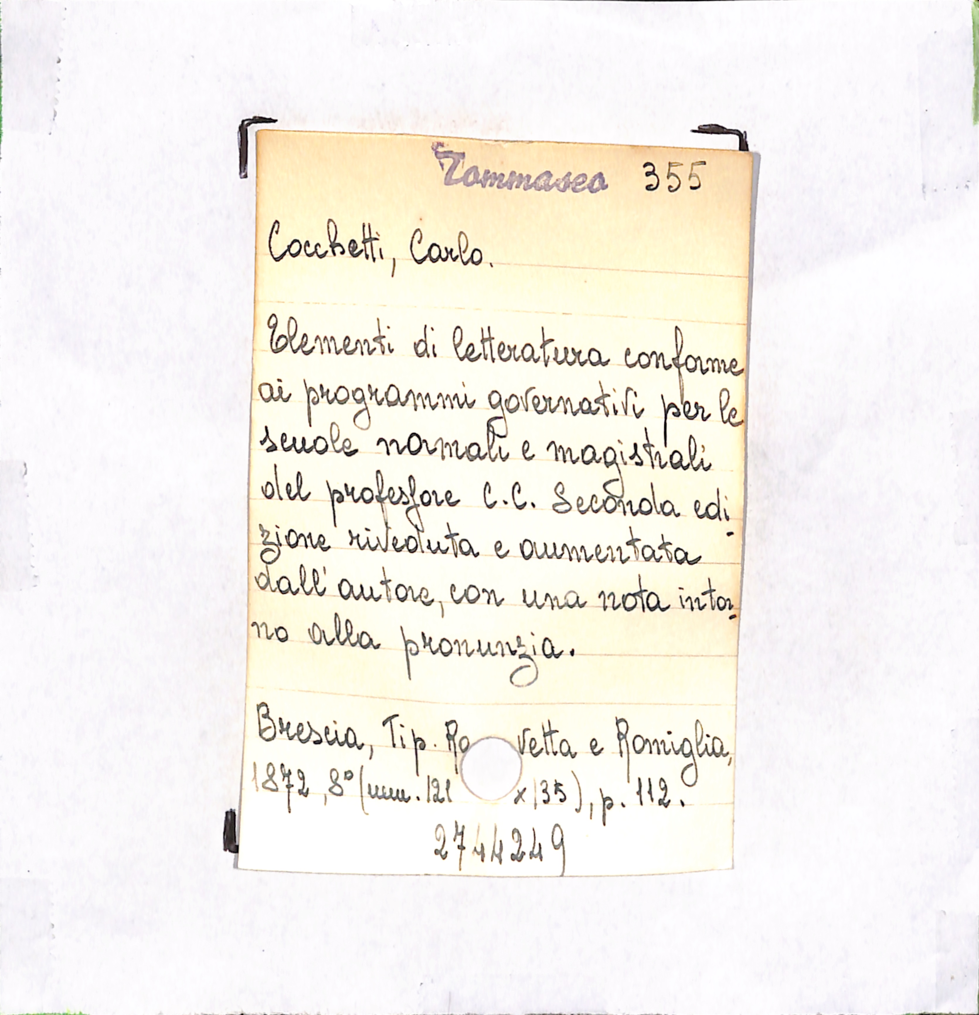 U.D. monografia Elementi di letteratura conforme ai programmi governativi per le scuole normali e magistrali del professore C. C.
