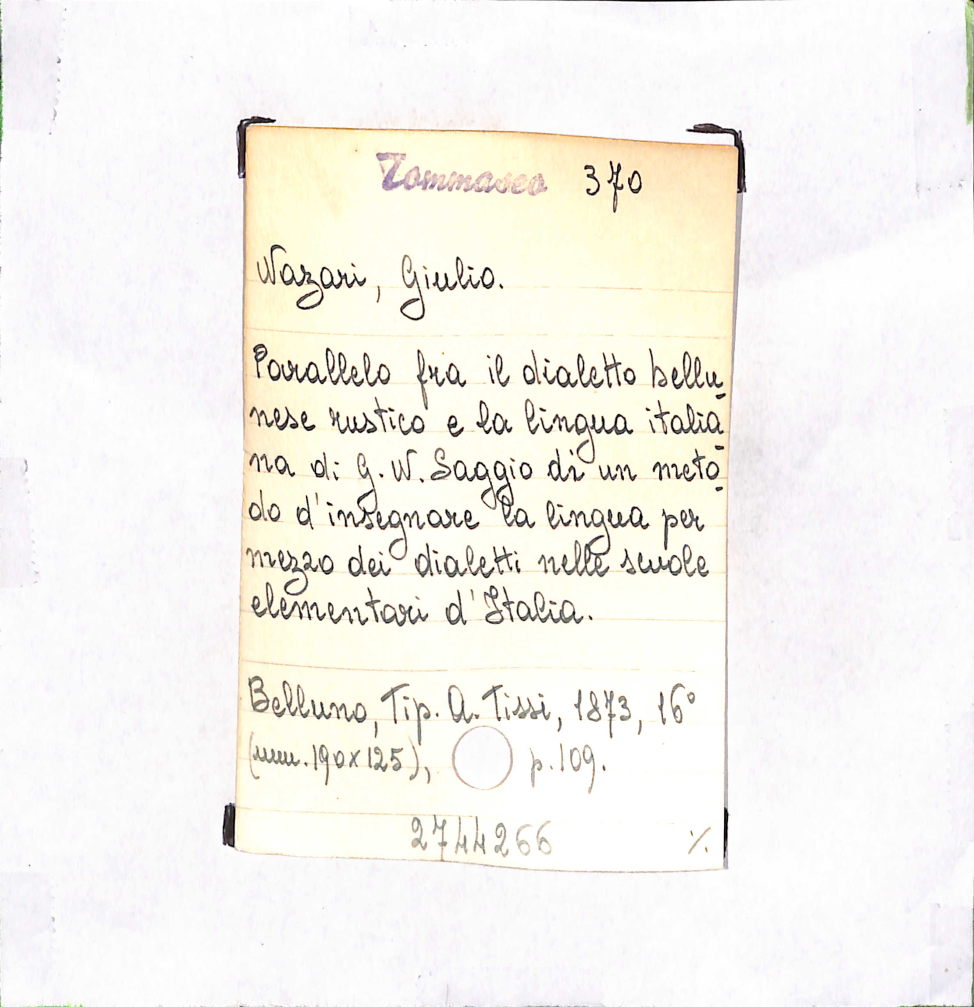 U.D. monografia Parallelo fra il dialetto bellunese rustico e la lingua italiana di G. N.
