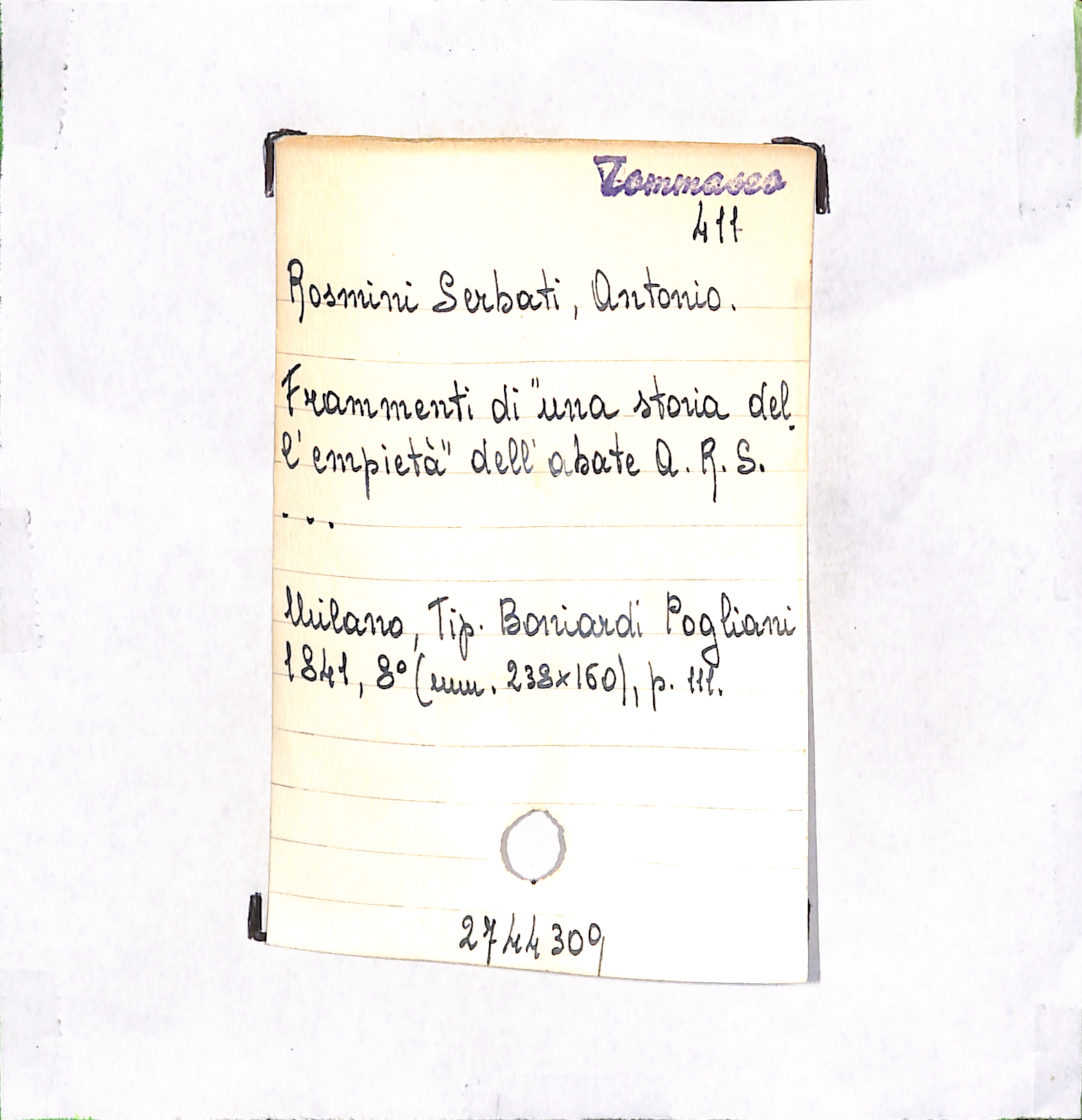U.D. monografia Frammenti di "una storia dell'empietà" dell'abate A. R. S. …