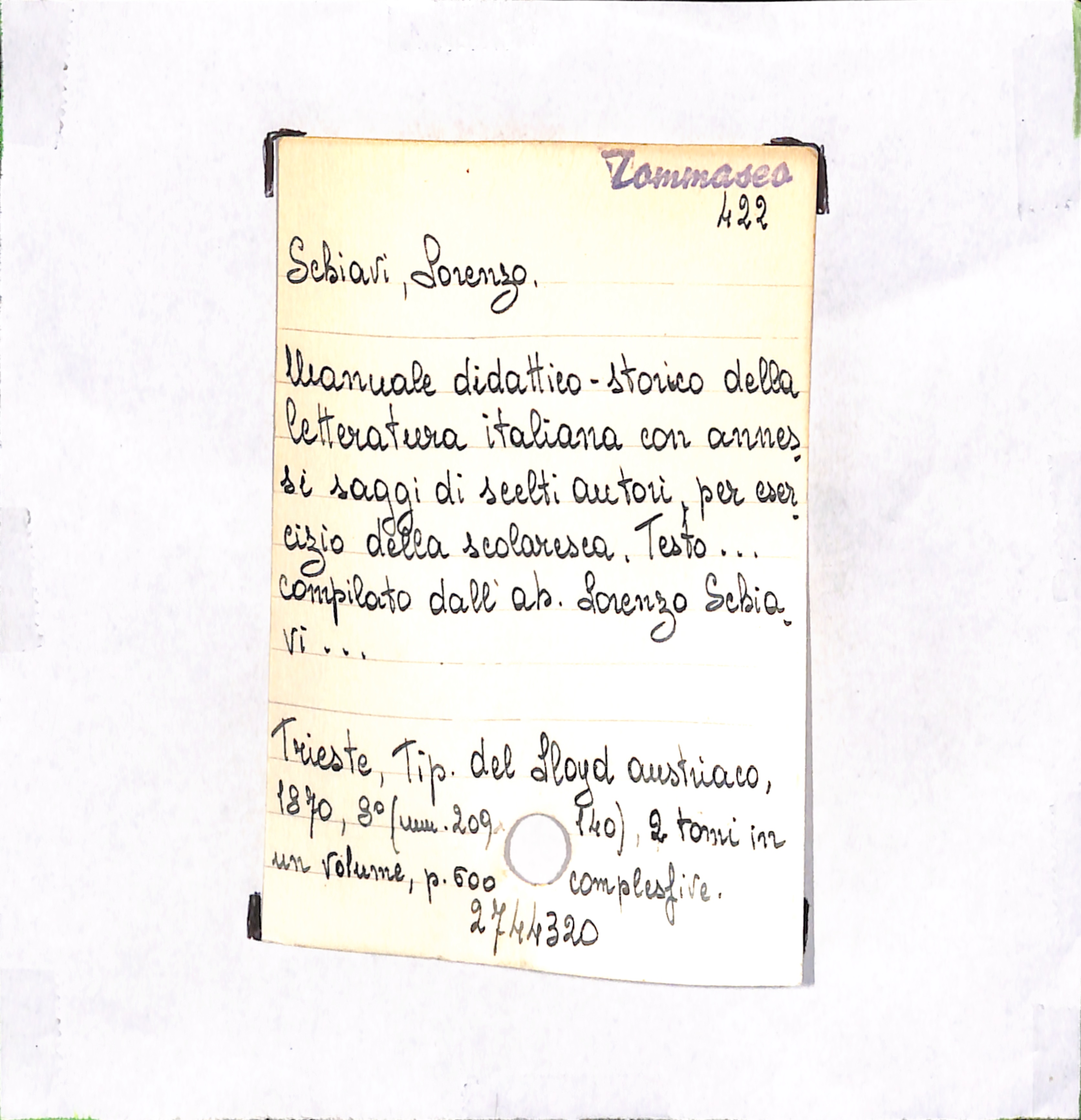 • Manuale didattico-storico della letteratura italiana con annessi saggi di scelti autori, per esercizio della scolaresca