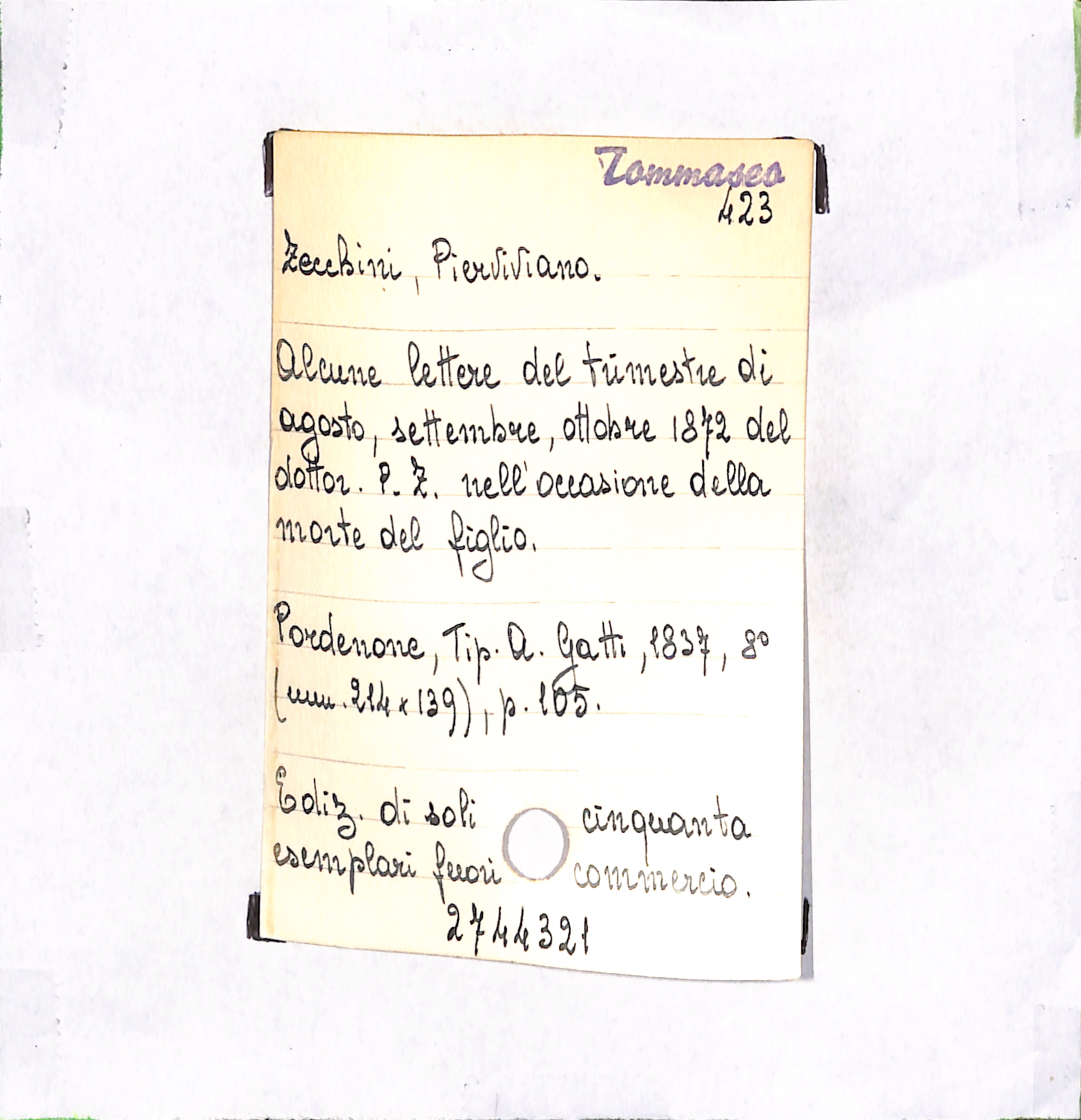 • Alcune lettere del trimestre di agosto, settembre, ottobre 1872 del dottor. P. Z. nell'occasione della morte del figlio